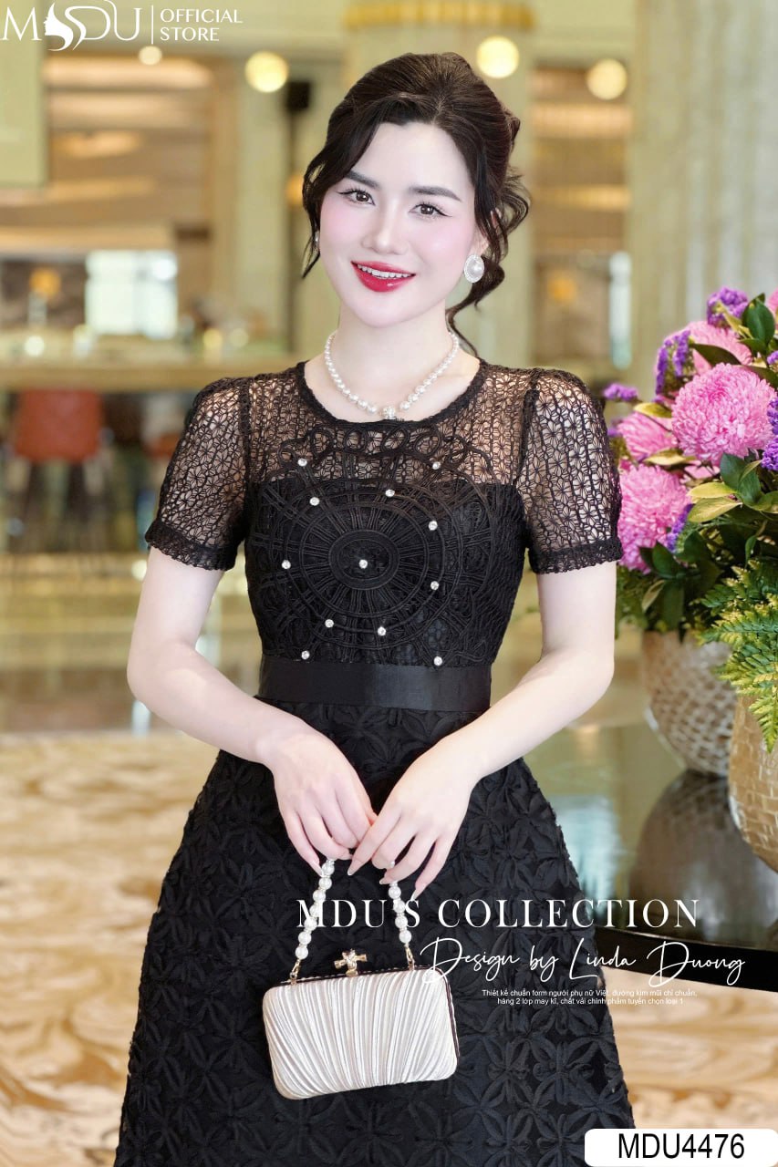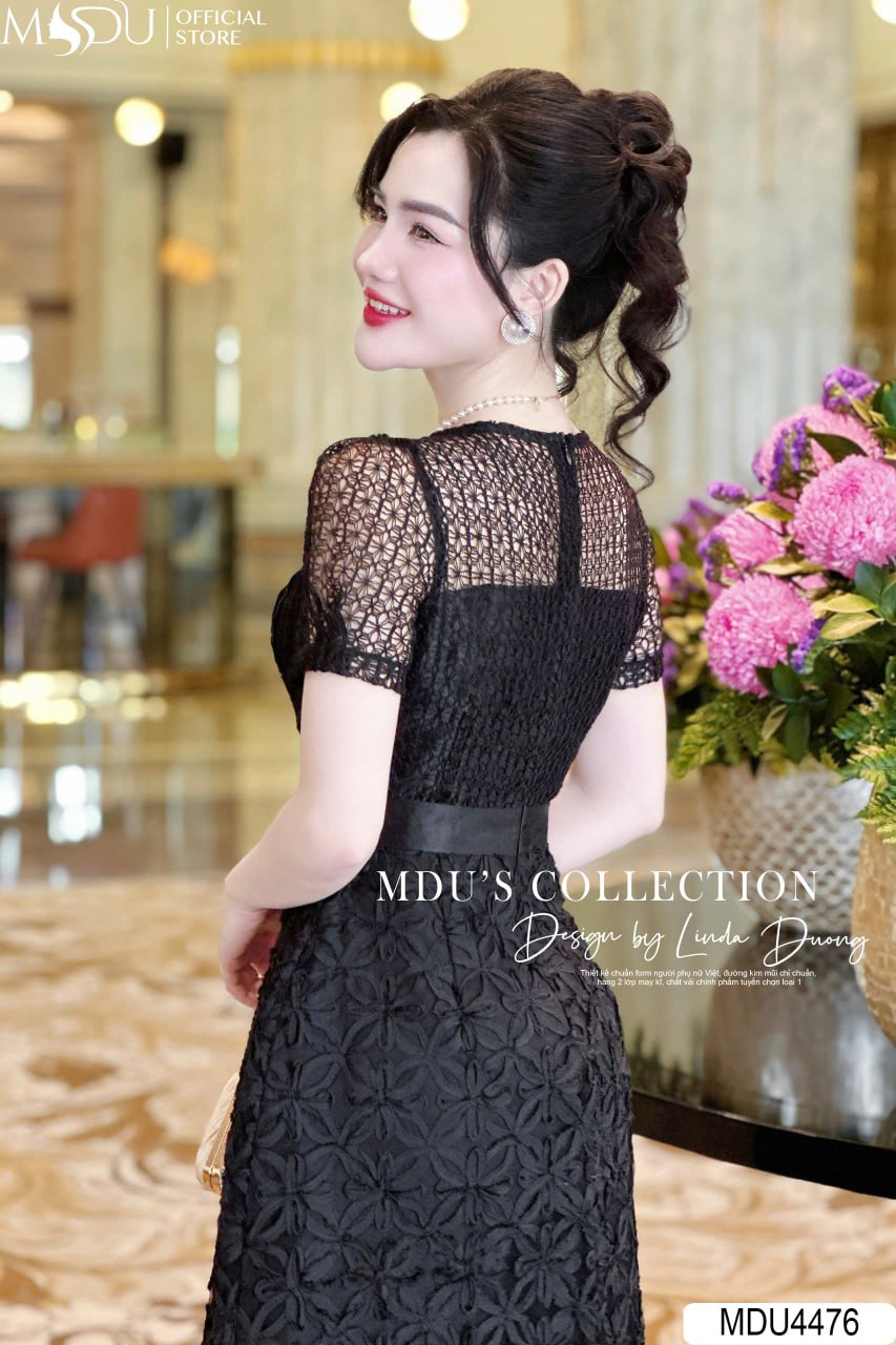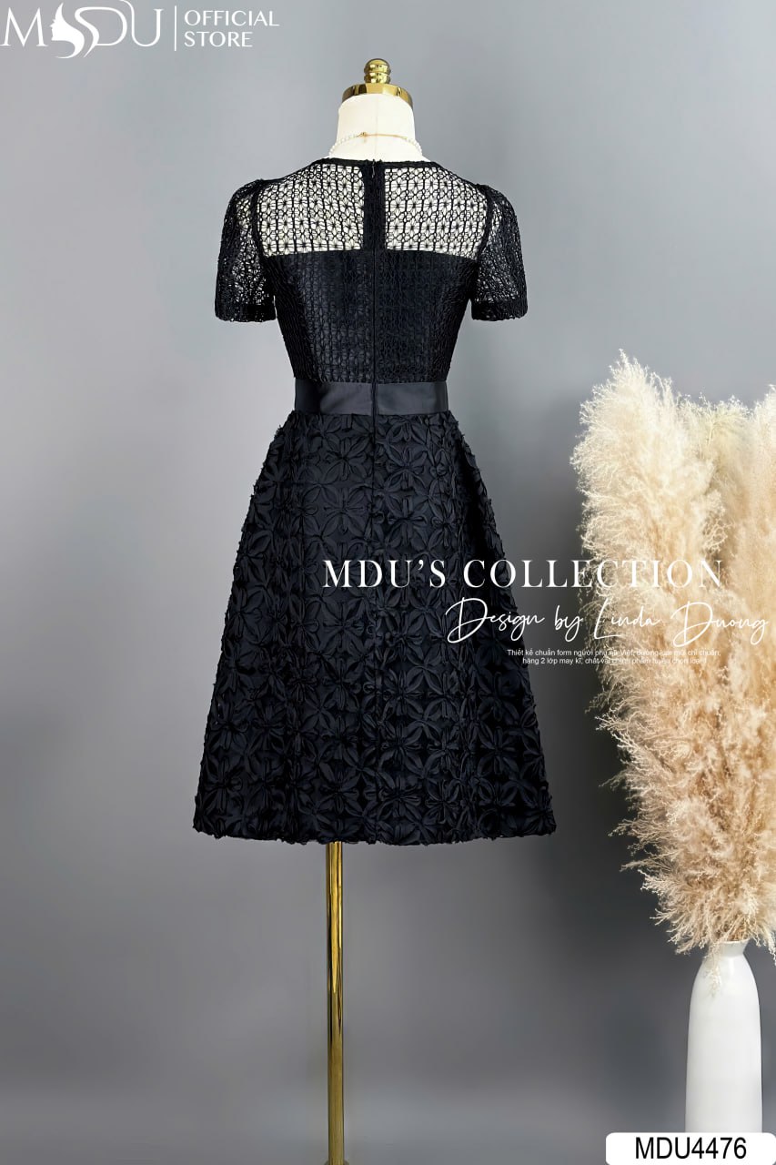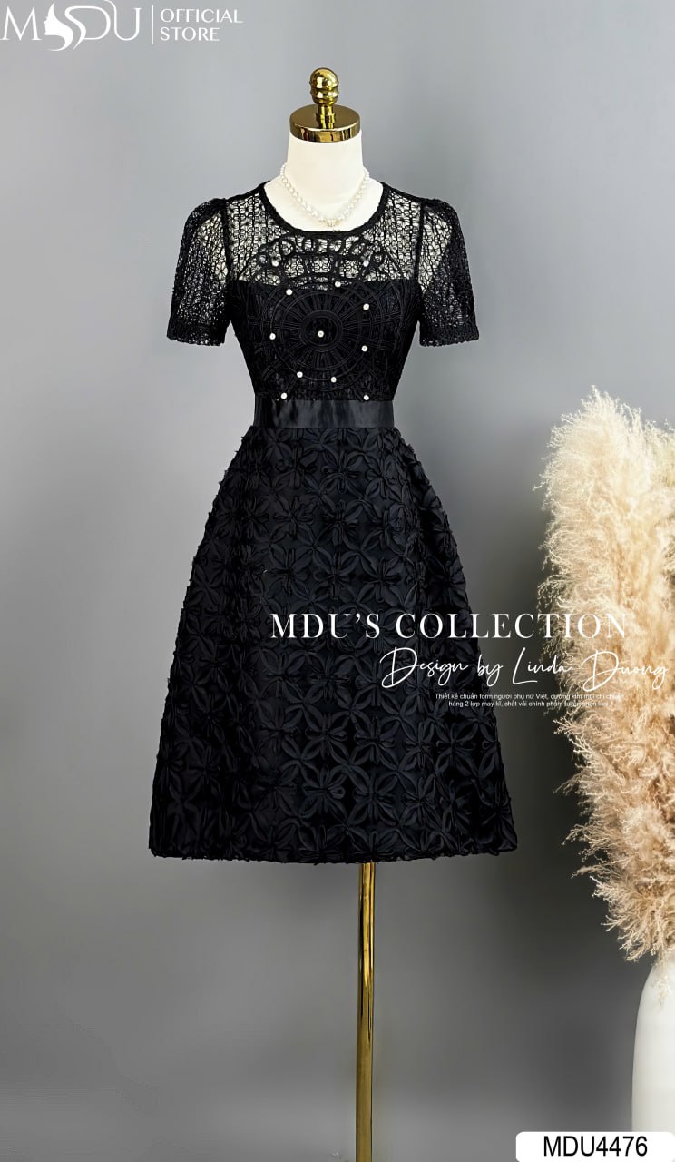 Váy Thiết Kế MDU4476 – Ren Hàn Dệt Hoa Nổi, Sắc Đen Lôi Cuốn