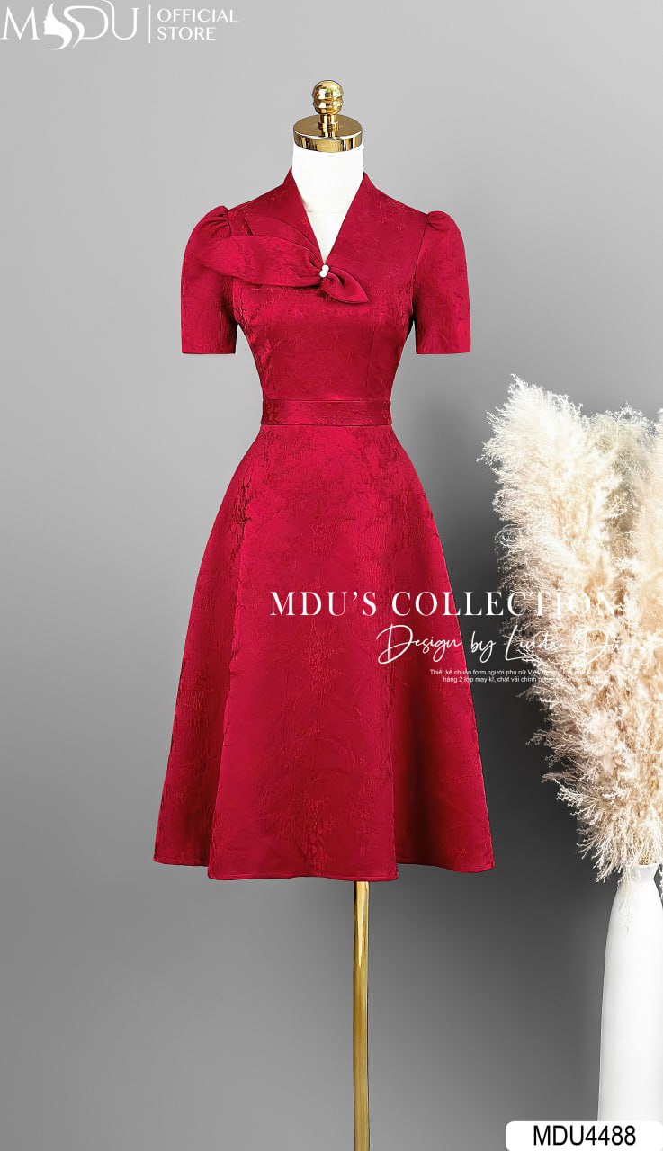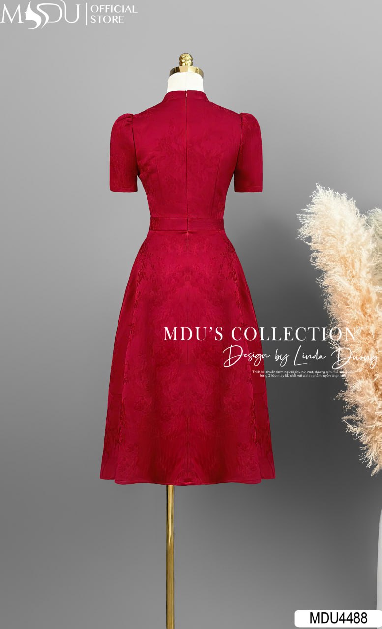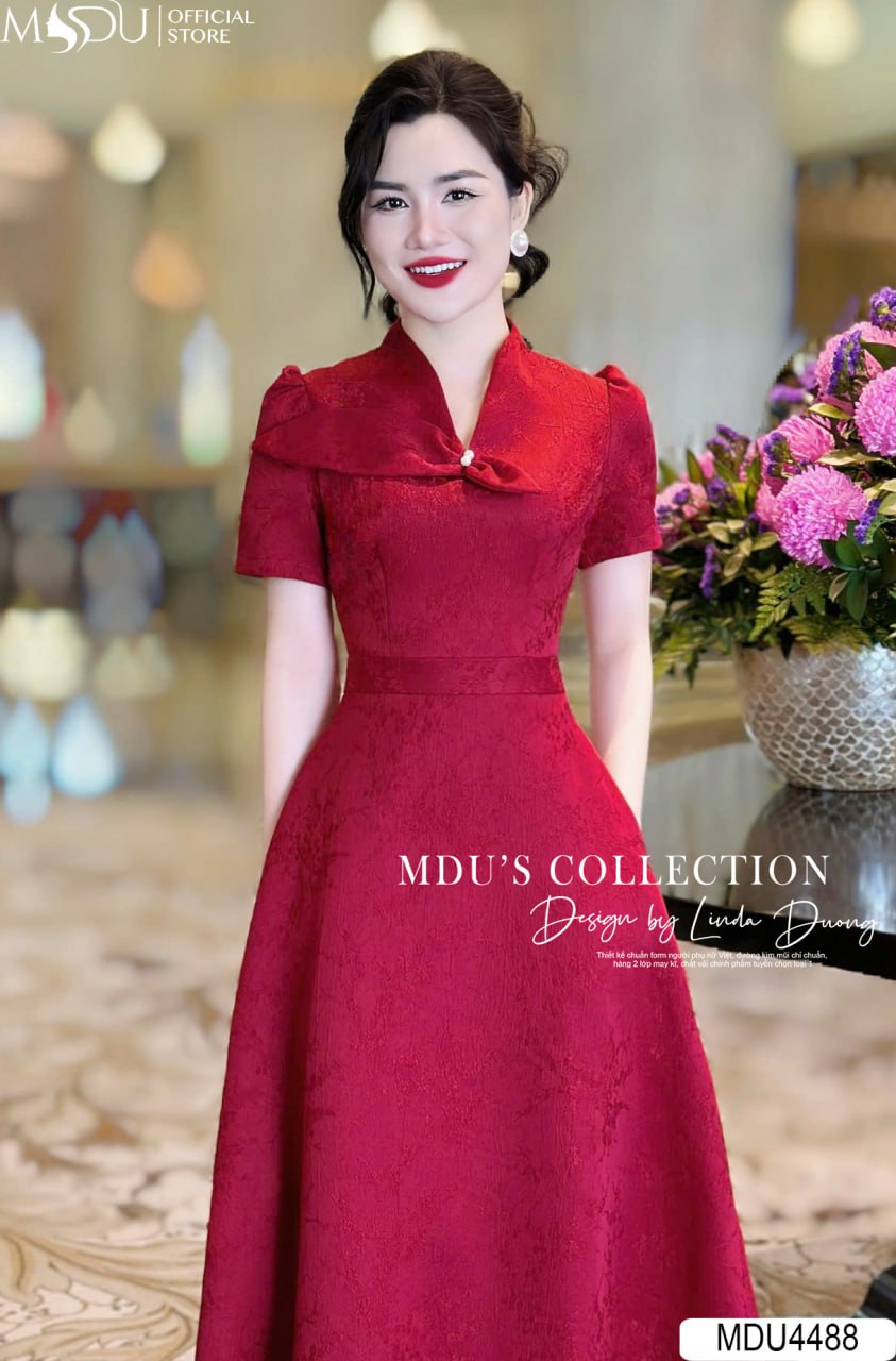 Váy Thiết Kế MDU4488 – Gấm Milan Cao Cấp, Sắc Đỏ Quyến Rũ