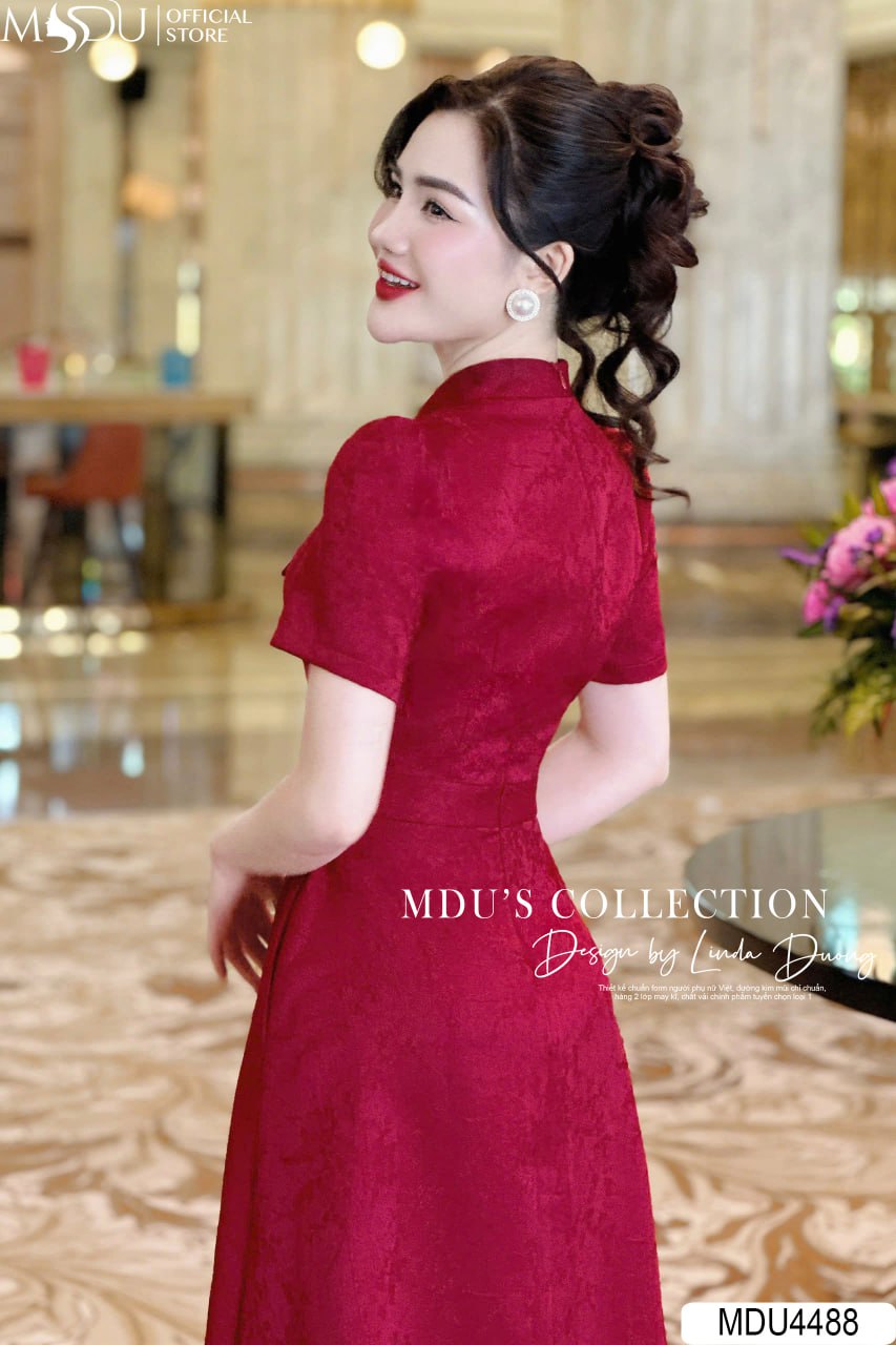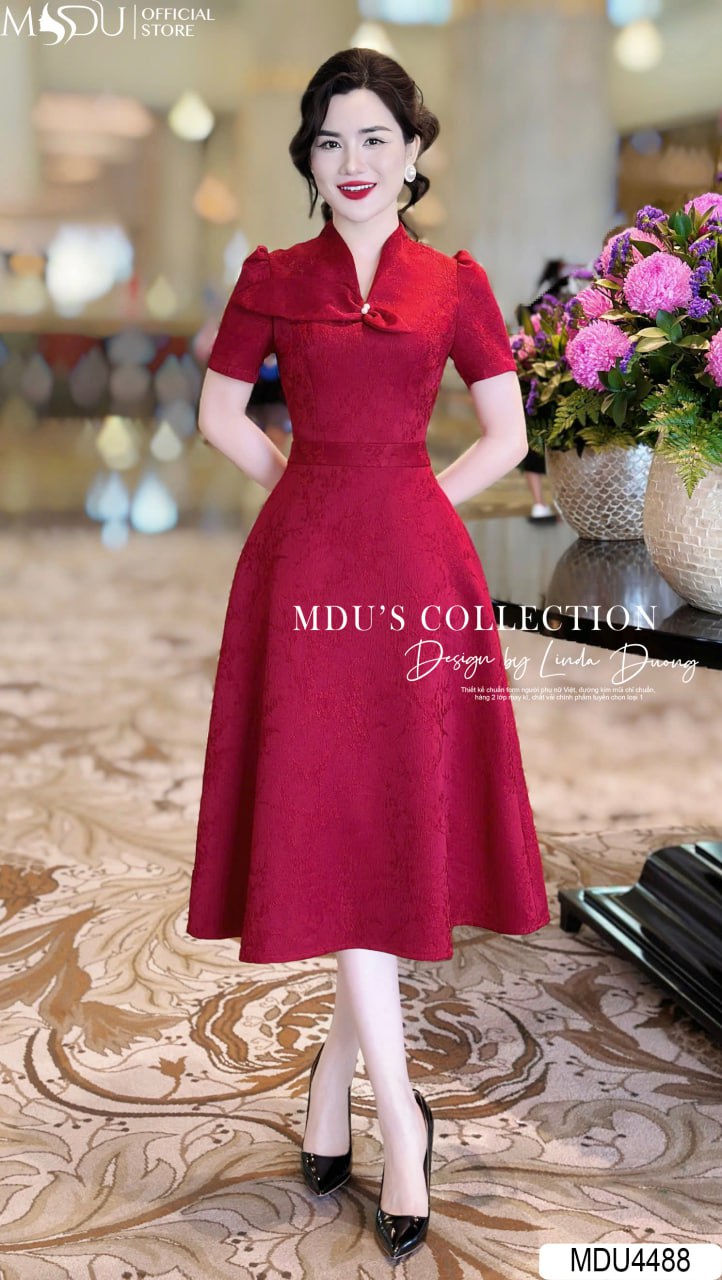 Sự kết hợp hoàn hảo giữa sắc đỏ nổi bật và chất liệu gấm Milan giúp MDU4488 tạo nên phong cách quyến rũ, dễ dàng phối hợp cùng các phụ kiện trang nhã. Chiếc váy mang đến vẻ đẹp nữ tính và duyên dáng, phù hợp cho các buổi gặp gỡ trang trọng và những dịp đặc biệt.