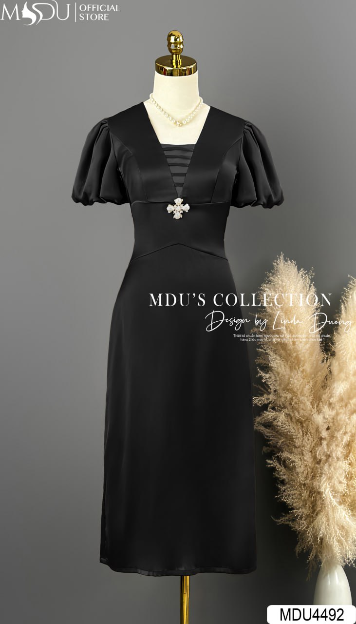Váy Thiết Kế MDU4492 – Chất Twist Satin Gân Cao Cấp, Màu Đen Sang Trọng