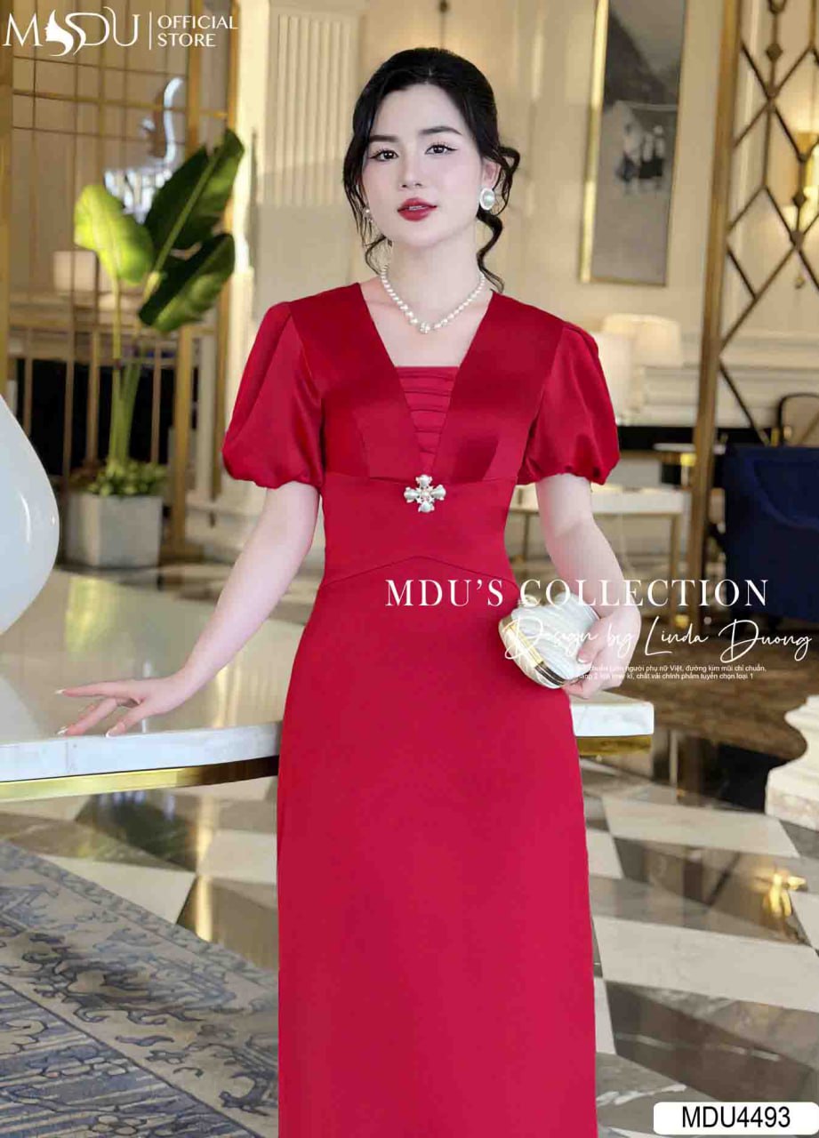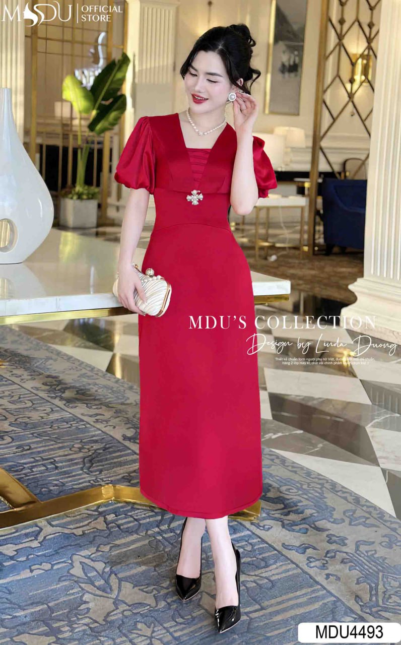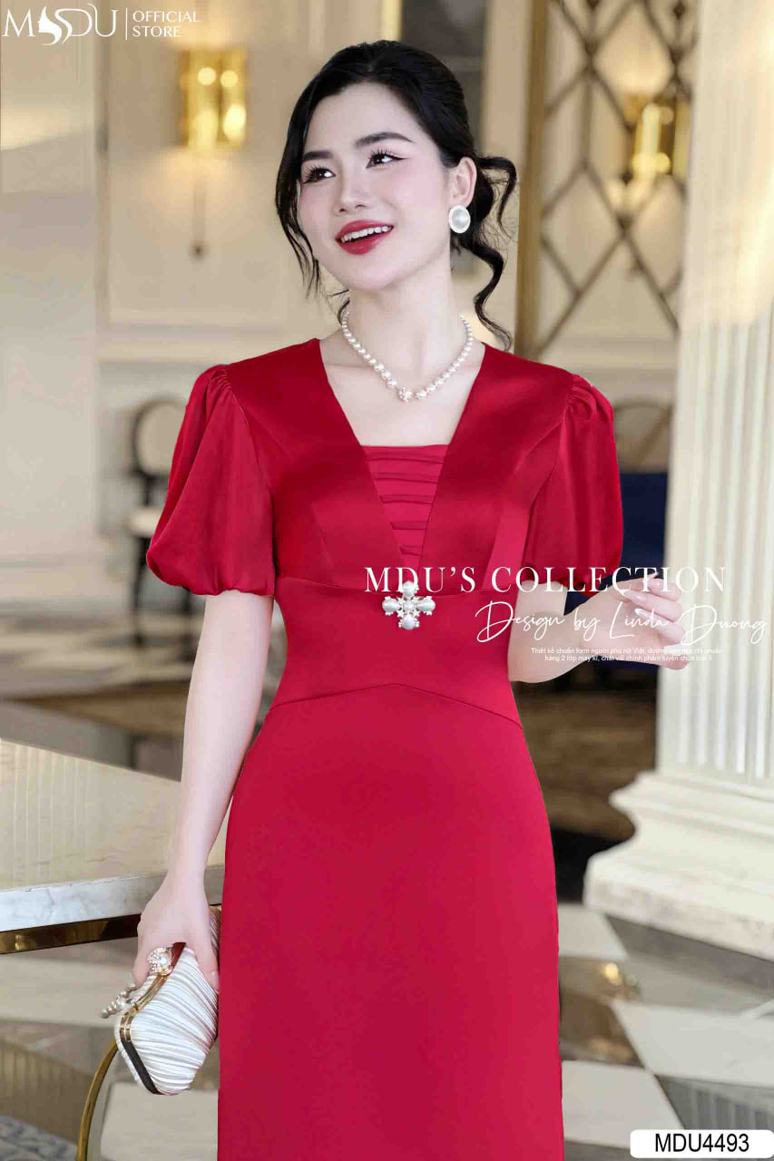 Với sắc đỏ quyến rũ, váy MDU4493 là sự lựa chọn hoàn hảo cho những ai muốn khẳng định phong cách thời trang tự tin, nổi bật. Thiết kế cổ chữ V mềm mại kết hợp với chi tiết xếp ly tinh tế giúp tôn dáng và tạo điểm nhấn cuốn hút. Mẫu váy này phù hợp với các buổi tiệc sang trọng, sự kiện đặc biệt hay những dịp lễ quan trọng, giúp người mặc tự tin và rạng rỡ hơn bao giờ hết.