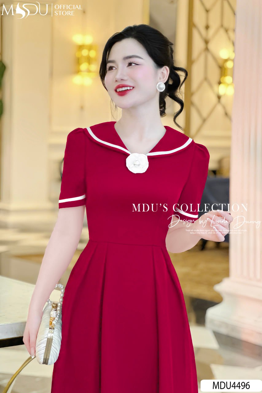 Váy Thiết Kế MDU4496 – Chất Mango Ý Cao Cấp, Màu Đỏ Quyến Rũ