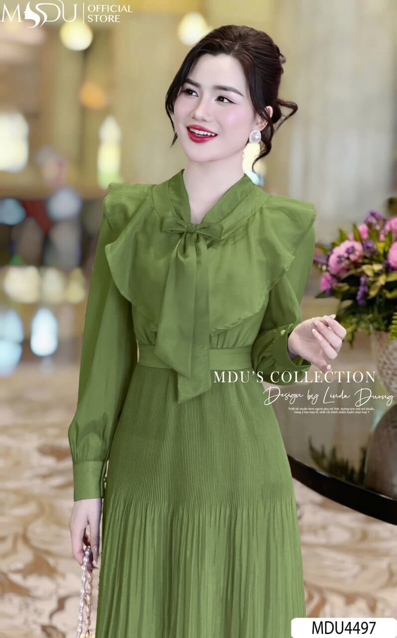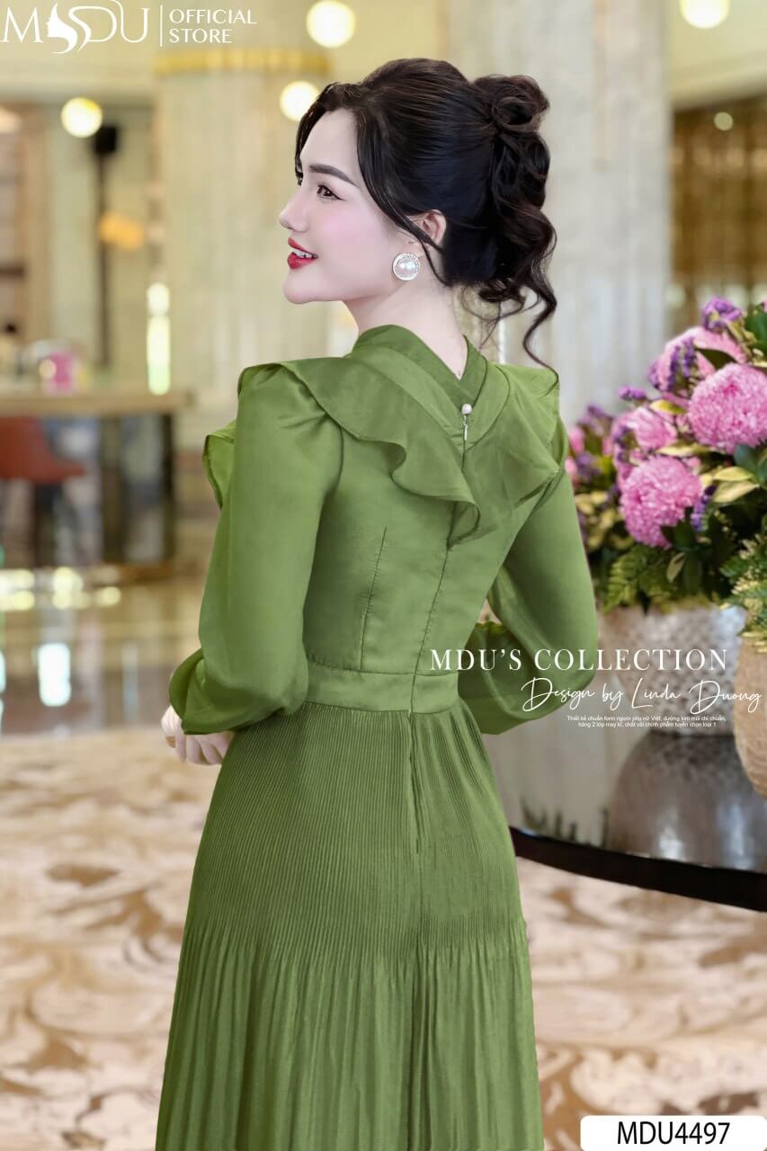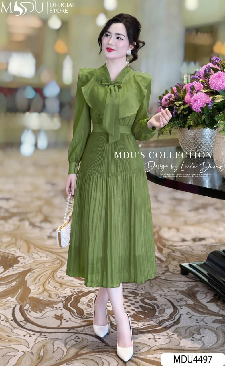 Váy Thiết Kế MDU4497 – Chất Tơ Óng Hàn Cao Cấp, Màu Xanh Lá Tươi Mát