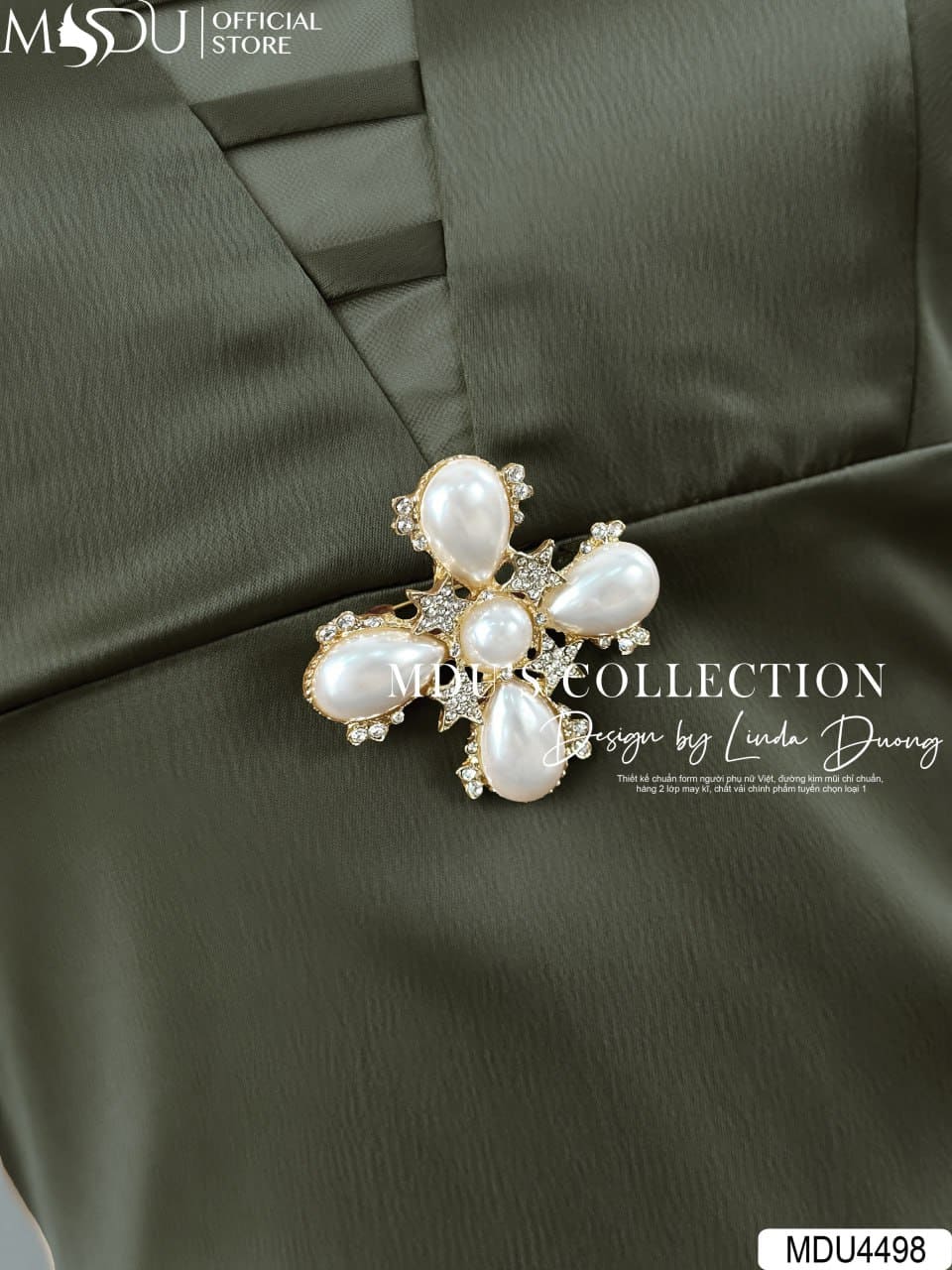 Váy Thiết Kế MDU4498 Lụa Twist Satin Gân Cao Cấp Dáng Ôm Dài Cổ Cách Điệu Đính Đá Sang Trọng