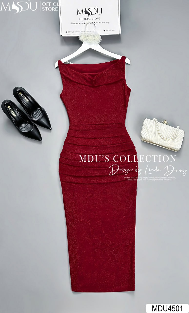 Sắc đỏ đô thời thượng của váy MDU4501 không chỉ tôn lên nét quyến rũ, mà còn mang lại vẻ đẹp sang trọng và quý phái. Thiết kế cổ chữ V thanh thoát, tay phồng lửng kết hợp với chi tiết xếp ly mềm mại giúp tôn dáng hoàn hảo, làm nổi bật phong thái tự tin và cuốn hút của người mặc. Đây chính là mẫu váy lý tưởng để bạn tự tin tỏa sáng trong các bữa tiệc quan trọng, sự kiện đặc biệt hay những buổi họp mặt trang trọng.