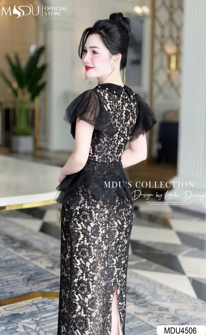 MDU Fashion tự hào giới thiệu thiết kế MDU4506 – một tuyệt phẩm dành cho những cô nàng yêu thích vẻ đẹp tinh tế, quyến rũ và sang trọng. Được chế tác từ chất liệu ren kén tằm cao cấp kết hợp cùng gam màu đen cổ điển, mẫu váy mang đến vẻ đẹp đầy cuốn hút, thanh thoát nhưng không kém phần nổi bật. Thiết kế ôm body giúp tôn vinh đường cong quyến rũ, làm nổi bật vẻ đẹp của phái đẹp trong từng chi tiết.
