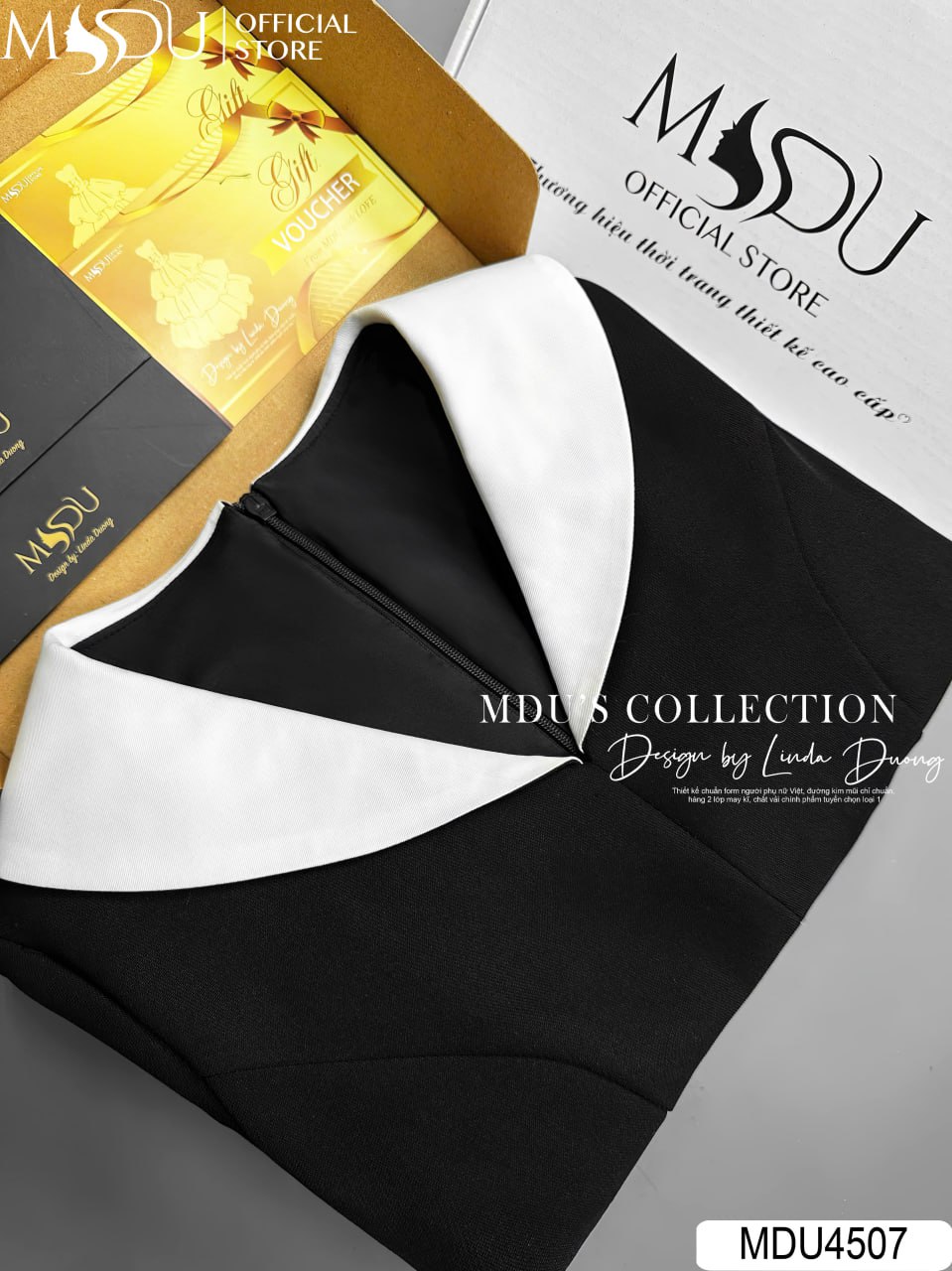 MDU Fashion, thương hiệu thời trang hàng đầu Việt Nam, hân hạnh ra mắt mẫu váy thiết kế MDU4507 – biểu tượng của sự thanh lịch và thời thượng. Chiếc váy được chế tác từ chất liệu Mango Hàn cao cấp, mang lại cảm giác mềm mại, nhẹ nhàng và thoải mái. Với thiết kế cổ V cách điệu, dáng váy xòe tinh tế cùng điểm nhấn là đai eo liền váy, MDU4507 kết hợp hoàn hảo giữa sự nữ tính và phong cách hiện đại. Gam màu đen phối trắng basic giúp người mặc dễ dàng nổi bật với phong cách sang trọng và đầy cuốn hút trong mọi dịp.