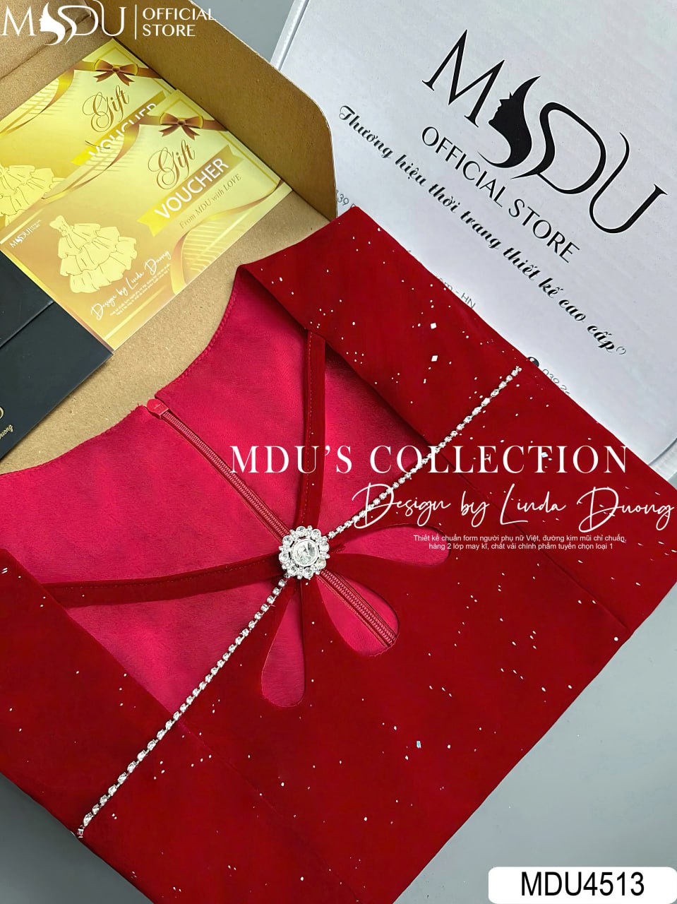 Sở hữu MDU4513, bạn không chỉ có một chiếc váy đẹp mắt với chất liệu nhung đính kim sa sang trọng và thiết kế tinh tế mà còn khẳng định gu thời trang thời thượng, giúp bạn tỏa sáng trong mọi sự kiện.