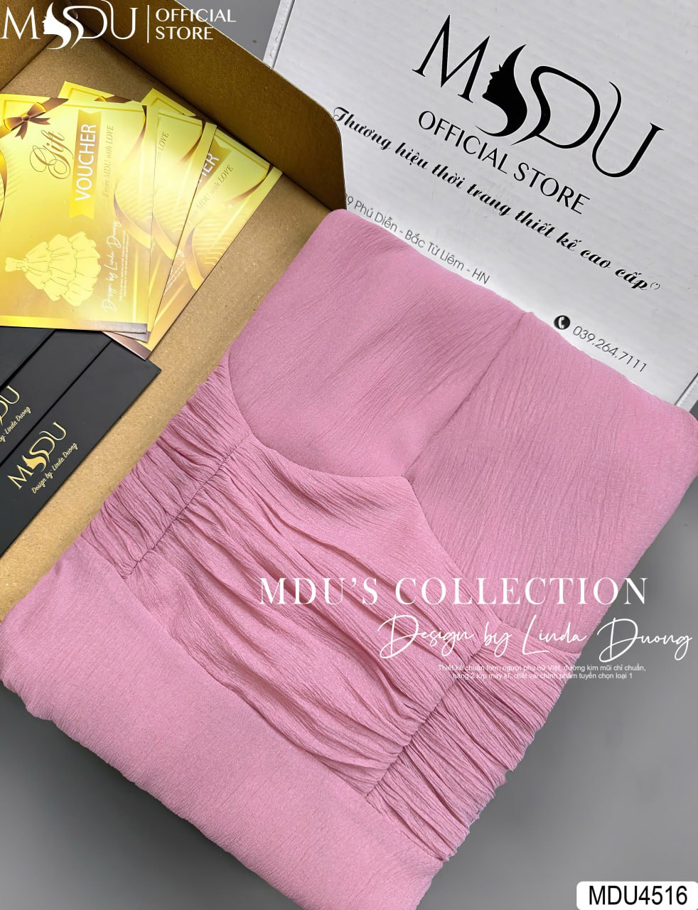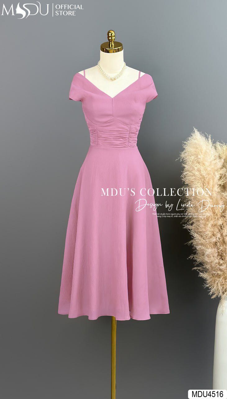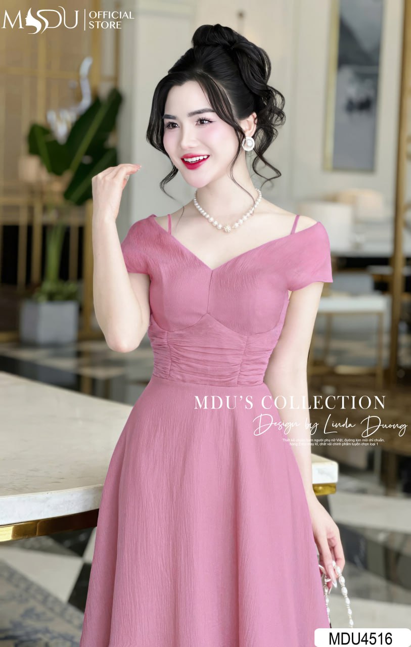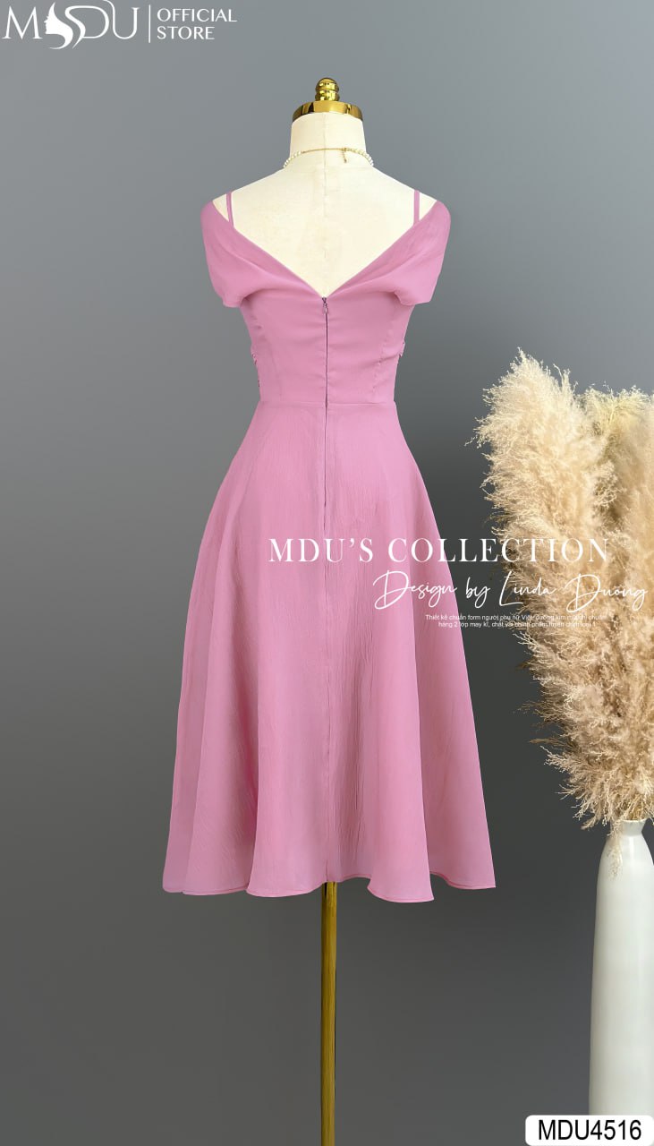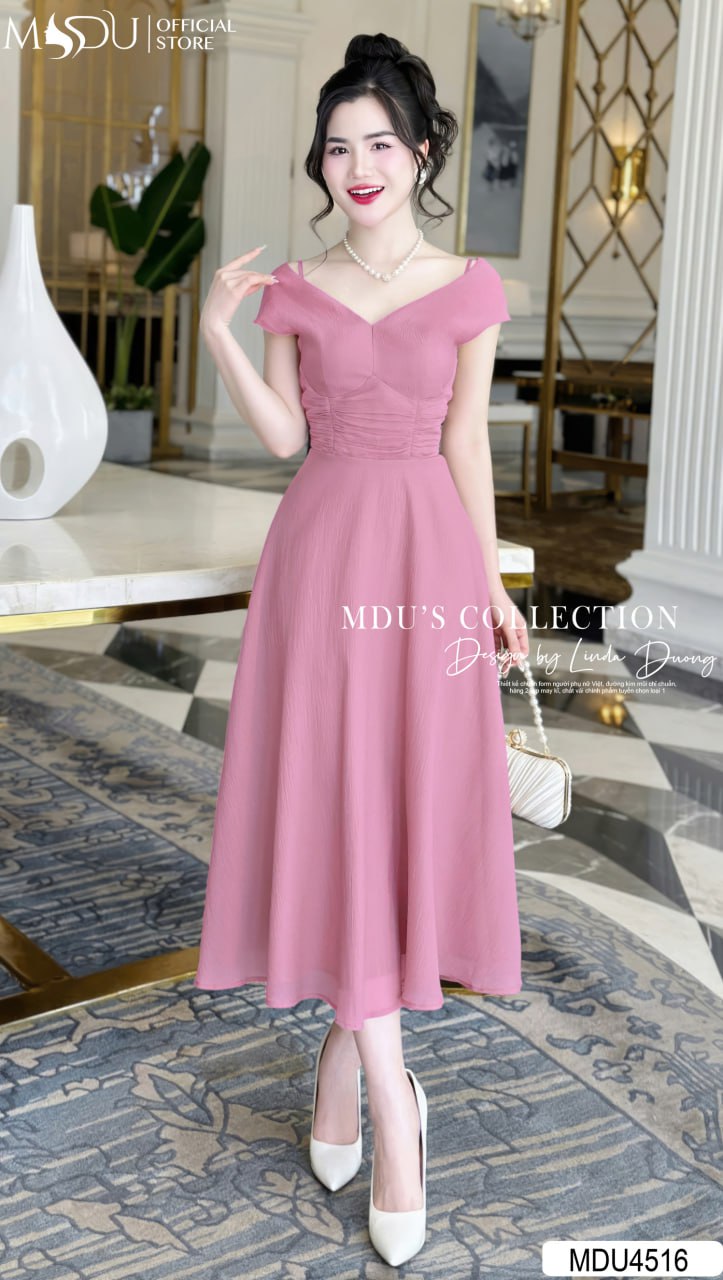 Với gam màu hồng nhạt nhẹ nhàng và quyến rũ, váy MDU4516 là sự lựa chọn hoàn hảo dành cho những cô nàng yêu thích vẻ đẹp ngọt ngào và thanh lịch. Thiết kế dáng xòe nhẹ nhàng cùng điểm nhấn eo tinh tế giúp tôn lên đường cong mềm mại, tạo phong cách duyên dáng. Mẫu váy này đặc biệt phù hợp cho các sự kiện, tiệc tối, hay những dịp đặc biệt, giúp bạn trở thành tâm điểm chú ý.