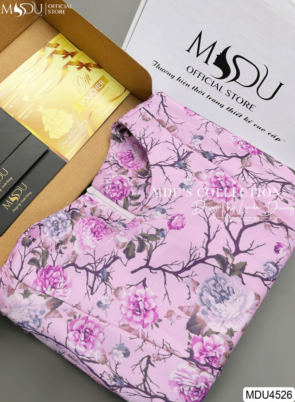 MDU4526 sử dụng chất liệu Mango Ý, đặc trưng bởi độ mềm mịn, rũ nhẹ và thoáng mát, mang đến cảm giác dễ chịu khi mặc. Họa tiết hoa in tinh tế trên nền vải giúp tổng thể trang phục trở nên nổi bật, tôn lên phong thái thanh lịch của người mặc. Gam màu hồng tím nhẹ nhàng phù hợp với nhiều tone da, mang lại vẻ ngoài ngọt ngào nhưng vẫn đầy khí chất.