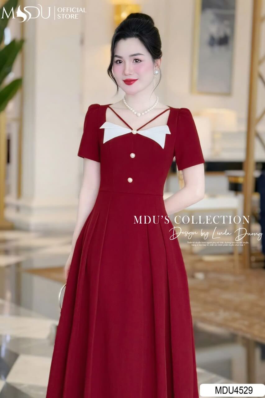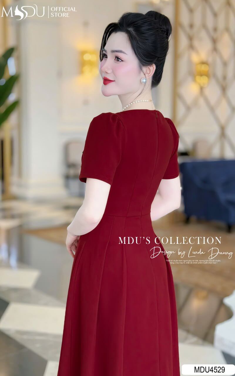 Gam màu đỏ đô sang trọng của váy MDU4529 là biểu tượng của sự quý phái và quyến rũ. Thiết kế cổ vuông độc đáo, được đính hàng cúc ngọc trai tinh tế, tạo điểm nhấn nổi bật, tăng thêm nét duyên dáng cho người mặc. Dáng váy xòe nhẹ nhàng giúp tôn lên đường nét cơ thể một cách hài hòa, mang lại phong cách thanh lịch, cuốn hút. Đây là lựa chọn hoàn hảo cho những buổi tiệc, sự kiện hay các dịp quan trọng, giúp bạn luôn nổi bật và tự tin.