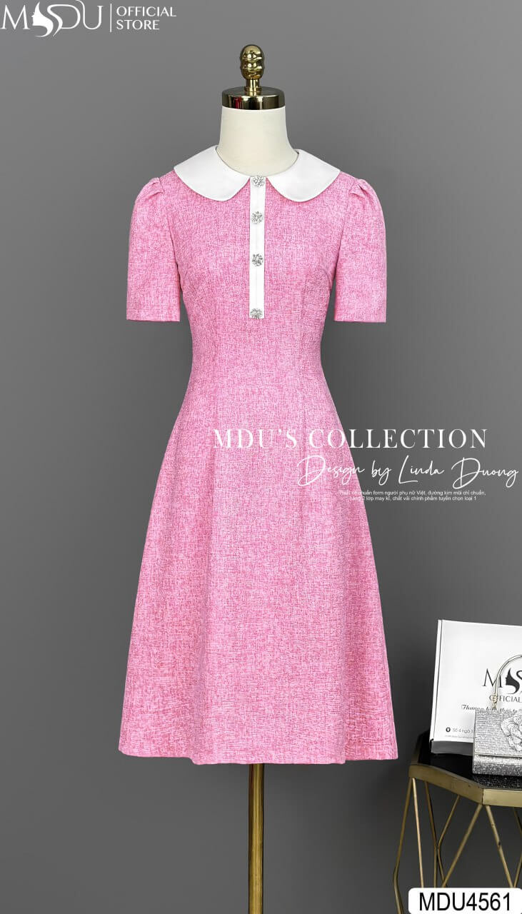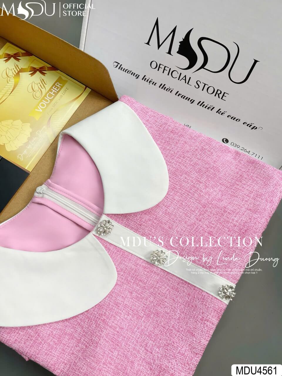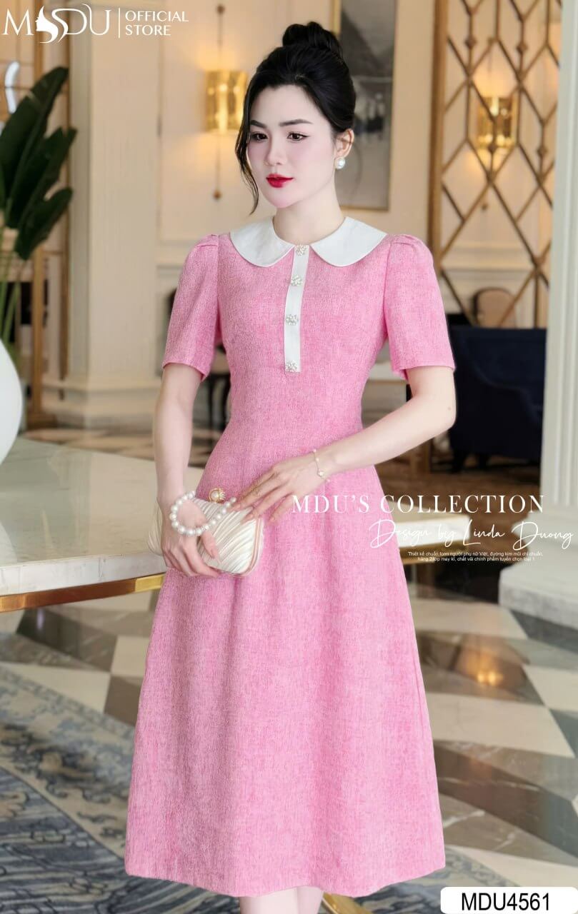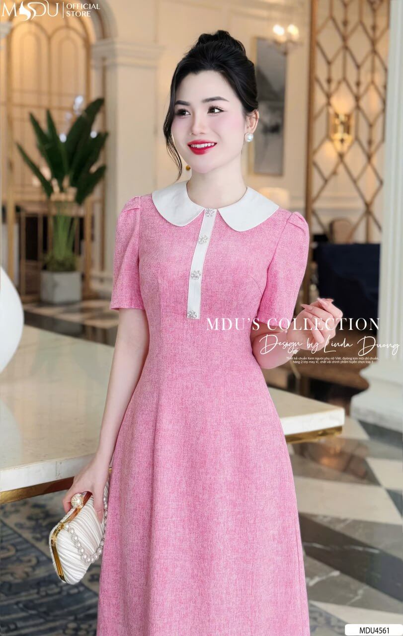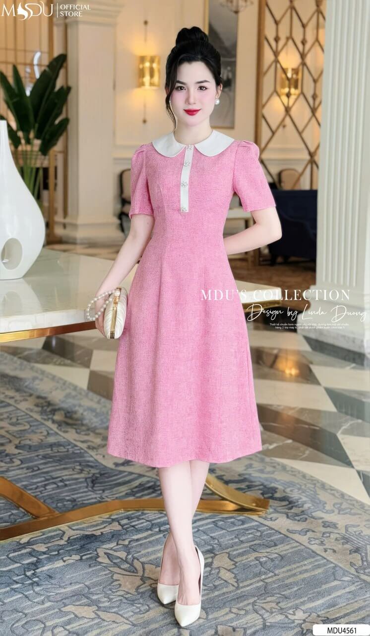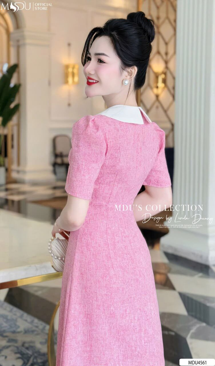 Sắc hồng nhạt ngọt ngào của MDU4561 mang đến vẻ đẹp nữ tính, nhẹ nhàng nhưng vẫn đầy sang trọng. Thiết kế dáng suông nhẹ nhàng kết hợp cổ sơ mi cách điệu tinh tế, tạo điểm nhấn độc đáo, phù hợp với nhiều dáng người. Đây là mẫu váy lý tưởng cho các dịp dạo phố, dự tiệc, hay môi trường công sở, mang lại vẻ ngoài cuốn hút và tự tin cho các quý cô.