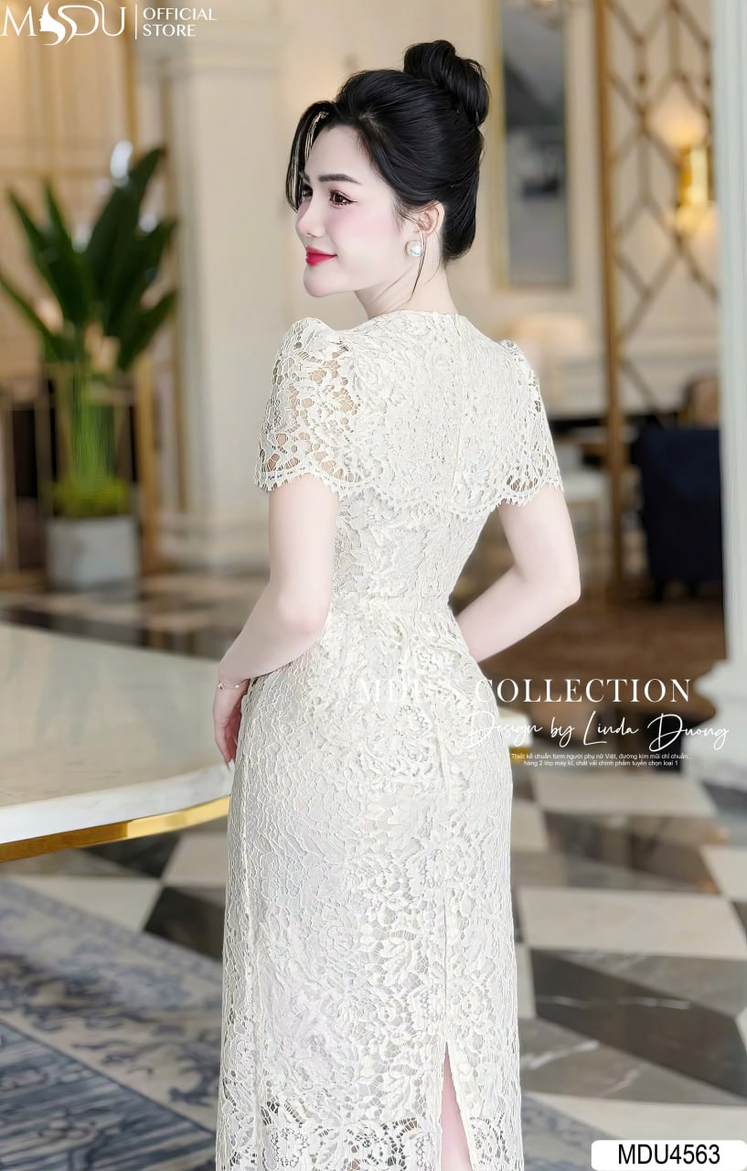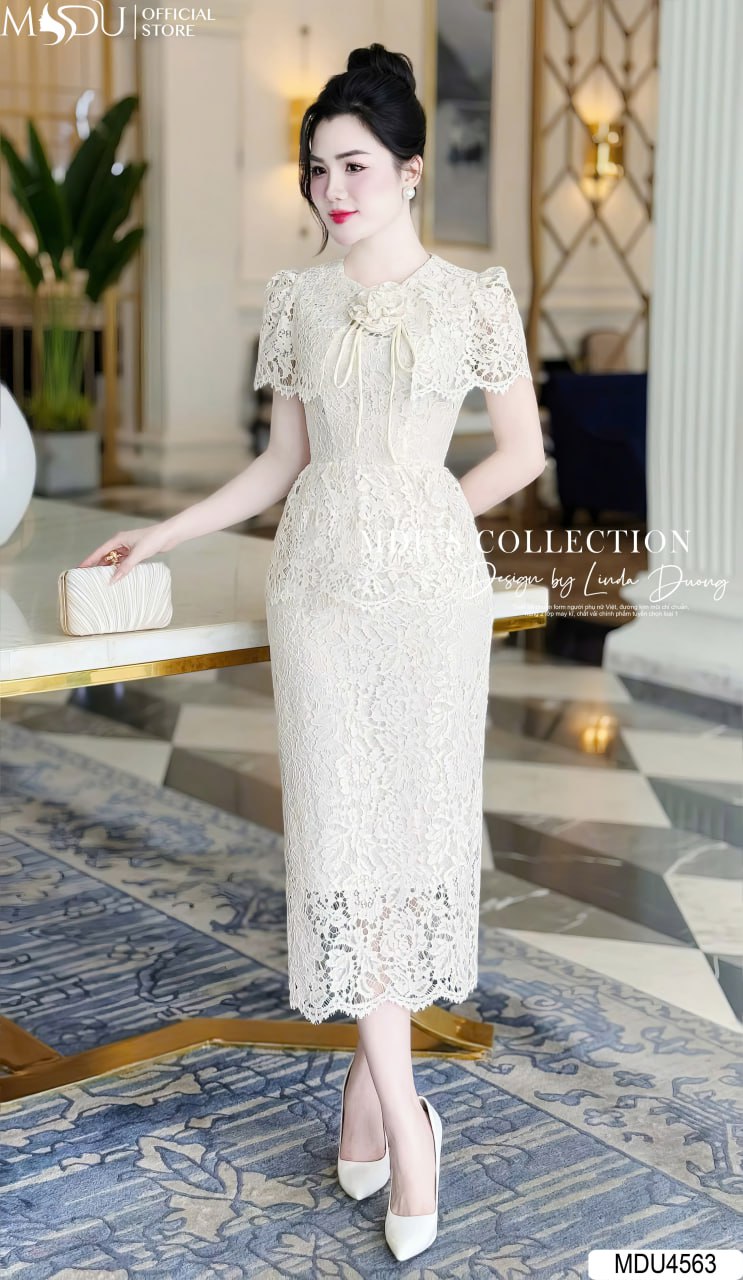 Với sắc trắng kem trang nhã, váy MDU4563 mang lại vẻ đẹp dịu dàng, thanh lịch và dễ dàng phối hợp với các phụ kiện. Thiết kế cổ chữ V nhẹ nhàng, tay phồng lửng cùng chi tiết ren tinh tế giúp tôn lên nét duyên dáng và phong thái tự tin cho người mặc. Đây chính là lựa chọn lý tưởng để bạn tỏa sáng trong các sự kiện đặc biệt, buổi tiệc hay các buổi họp mặt quan trọng.