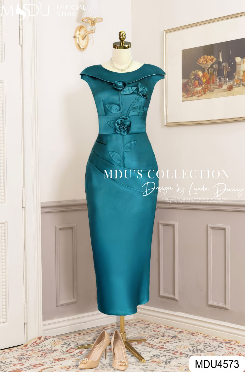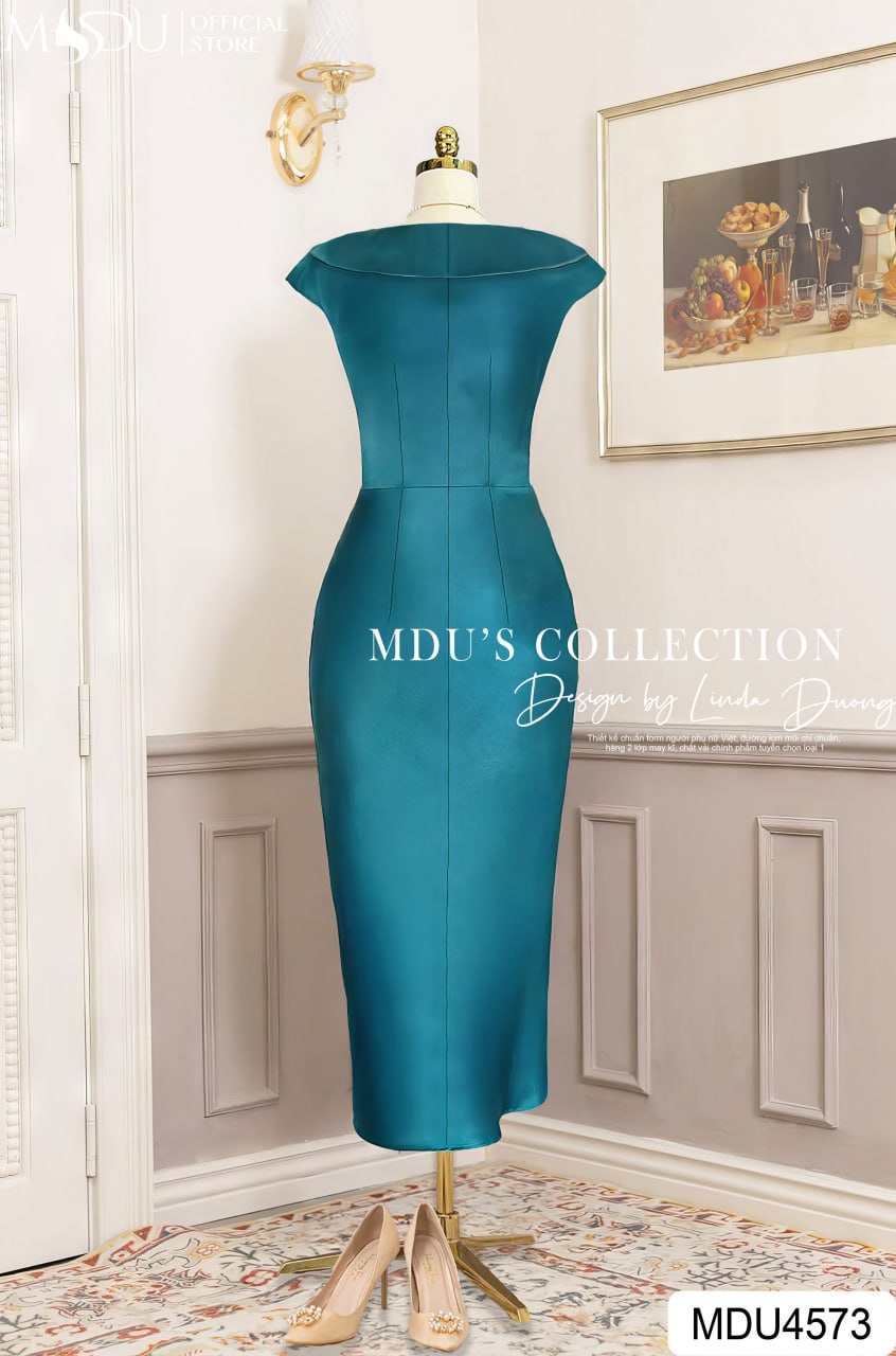 Với sắc xanh mallard thời thượng, váy MDU4573 mang lại vẻ đẹp hiện đại, tinh tế và dễ dàng phối hợp với các phụ kiện. Điểm nhấn của thiết kế nằm ở phần cổ thuyền độc đáo, mang lại vẻ đẹp nhẹ nhàng nhưng không kém phần ấn tượng. Dáng váy ôm vừa vặn, tôn lên đường cong cơ thể đầy tinh tế, giúp phái đẹp tỏa sáng trong các buổi tiệc, sự kiện quan trọng hoặc các dịp lễ kỷ niệm.