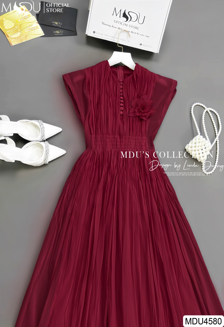 Với sắc đỏ đô quý phái và quyến rũ, váy MDU4580 giúp phái đẹp dễ dàng thu hút mọi ánh nhìn. Thiết kế cổ tròn thanh lịch, tay lửng nhẹ nhàng cùng những đường xếp ly tinh tế tạo nên phong thái tự tin và lôi cuốn cho người mặc. Đây chính là lựa chọn lý tưởng để bạn tỏa sáng trong các buổi tiệc, sự kiện quan trọng hoặc buổi hẹn gặp đặc biệt.