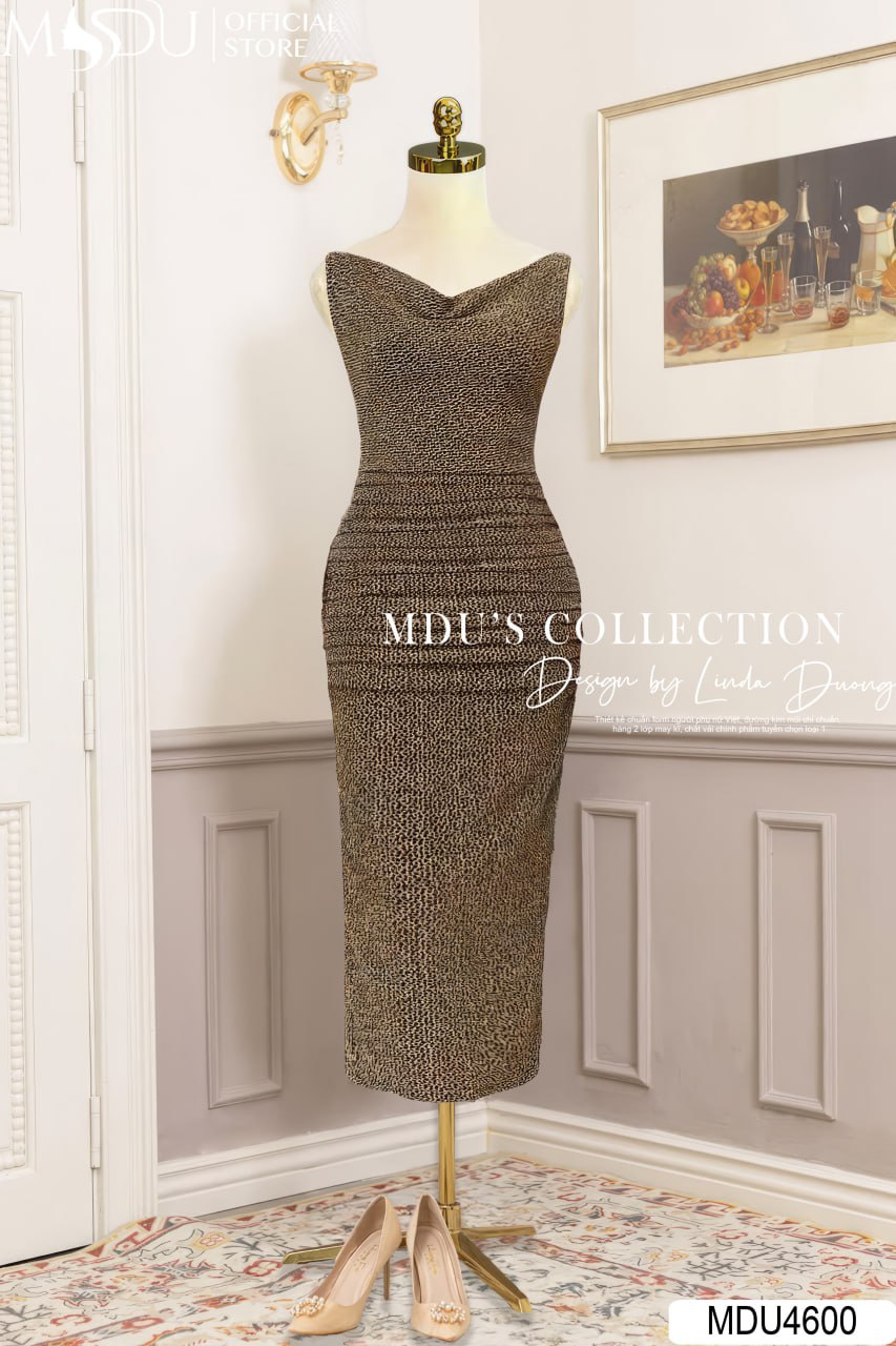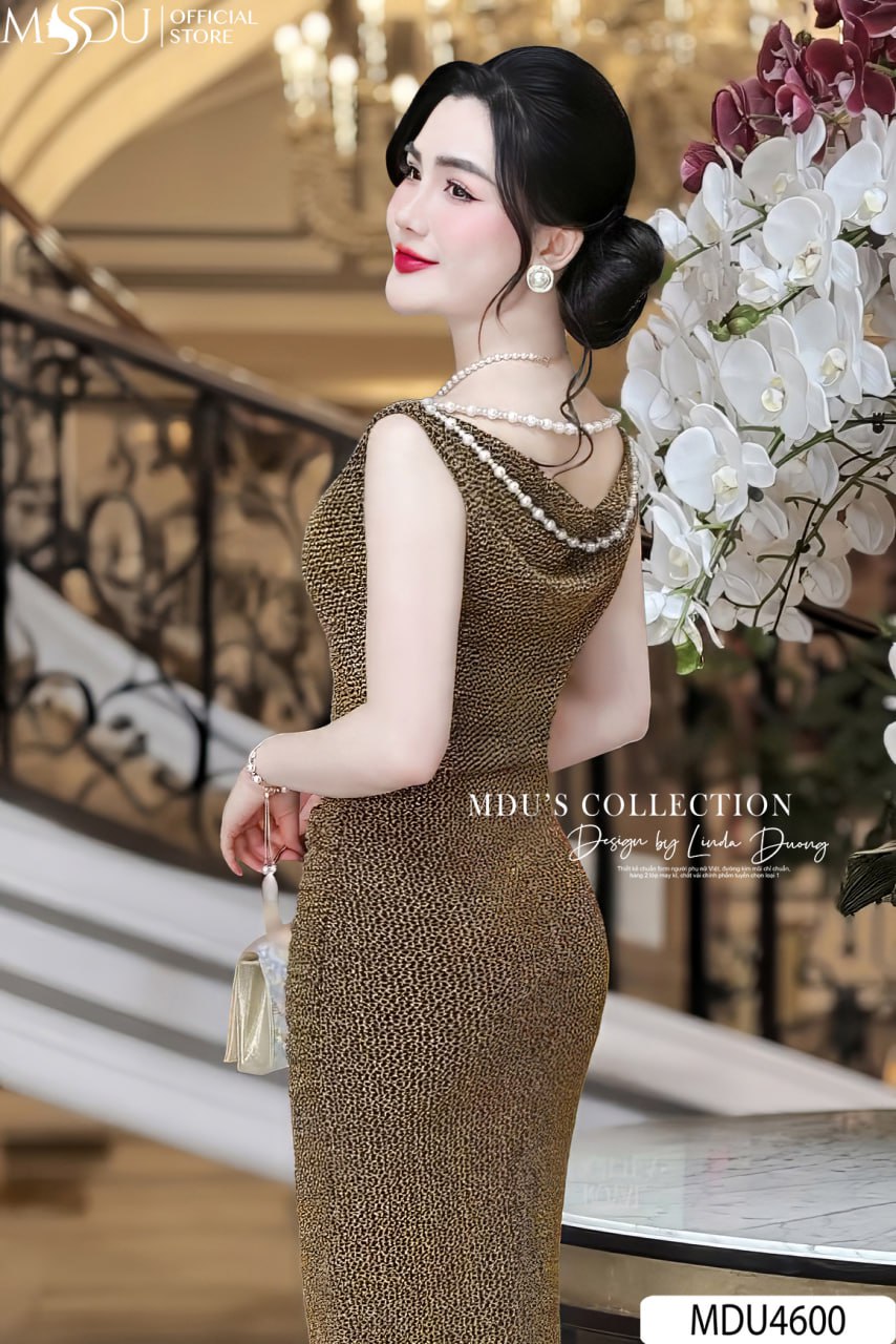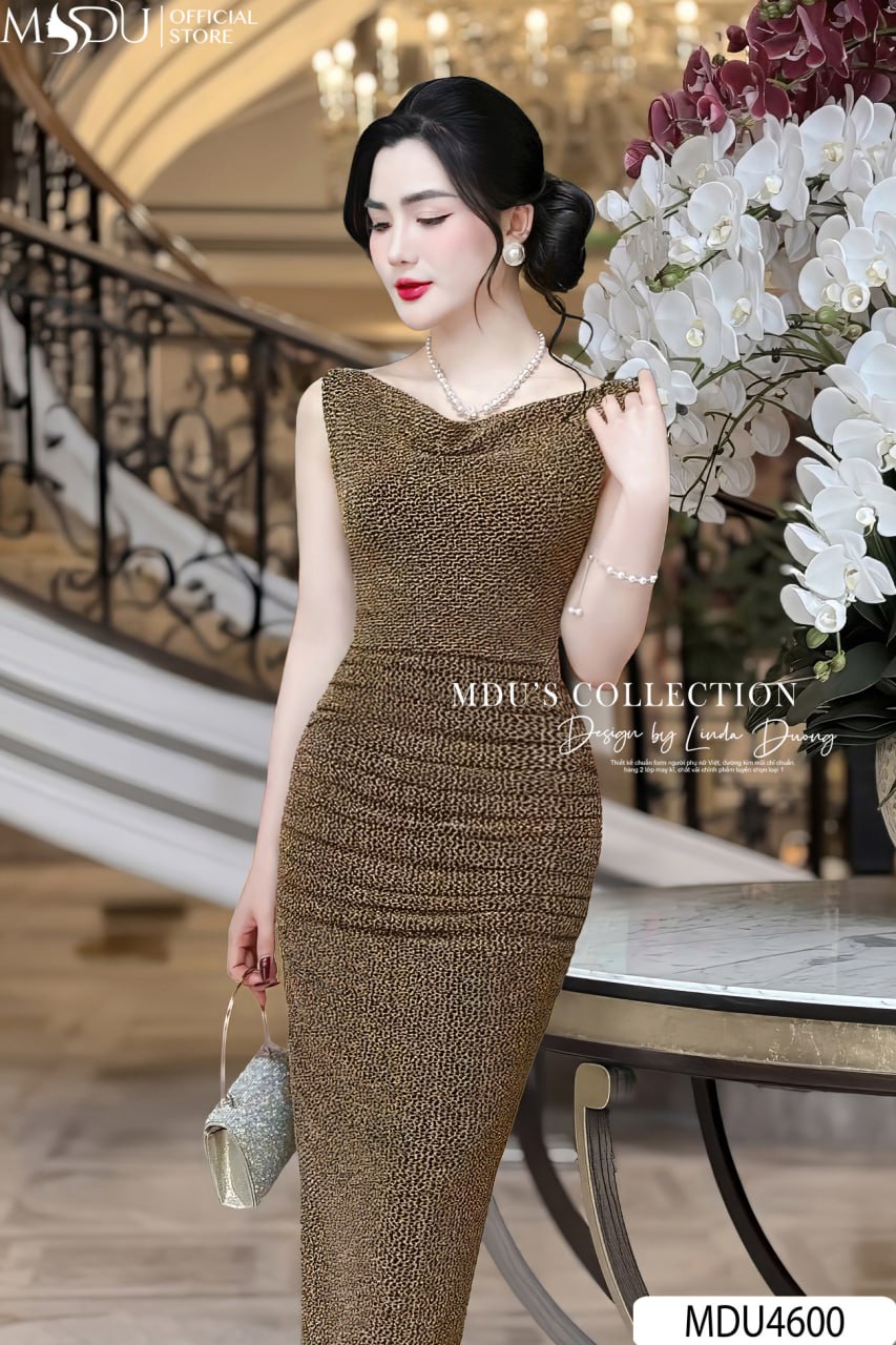 MDU Fashion, thương hiệu thời trang hàng đầu Việt Nam, hân hạnh giới thiệu mẫu váy thiết kế MDU4600 – biểu tượng mới của sự sang trọng và quyền lực. Chiếc váy được chế tác từ chất liệu nhũ kim sa cao cấp, mang đến vẻ đẹp lấp lánh, quý phái và vô cùng cuốn hút. Với gam màu nâu đan xen cùng đen quyền lực, thiết kế dáng ôm dài tôn dáng hoàn hảo, cùng phần cổ đính ngọc tinh tế, MDU4600 là lựa chọn lý tưởng để phái đẹp tỏa sáng trong mọi sự kiện quan trọng.