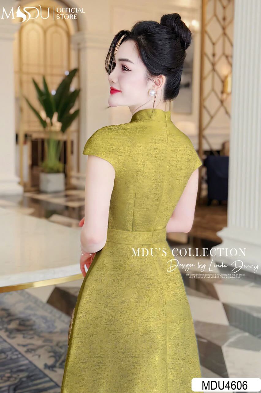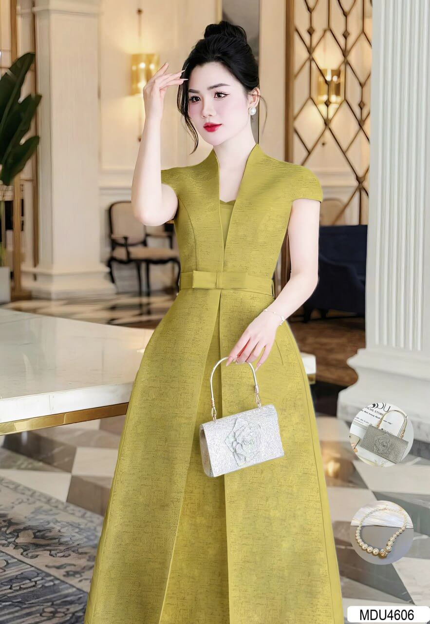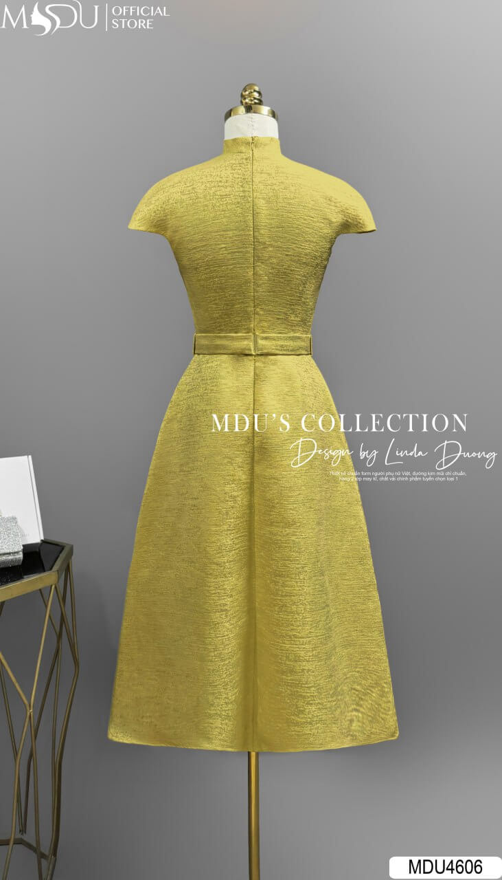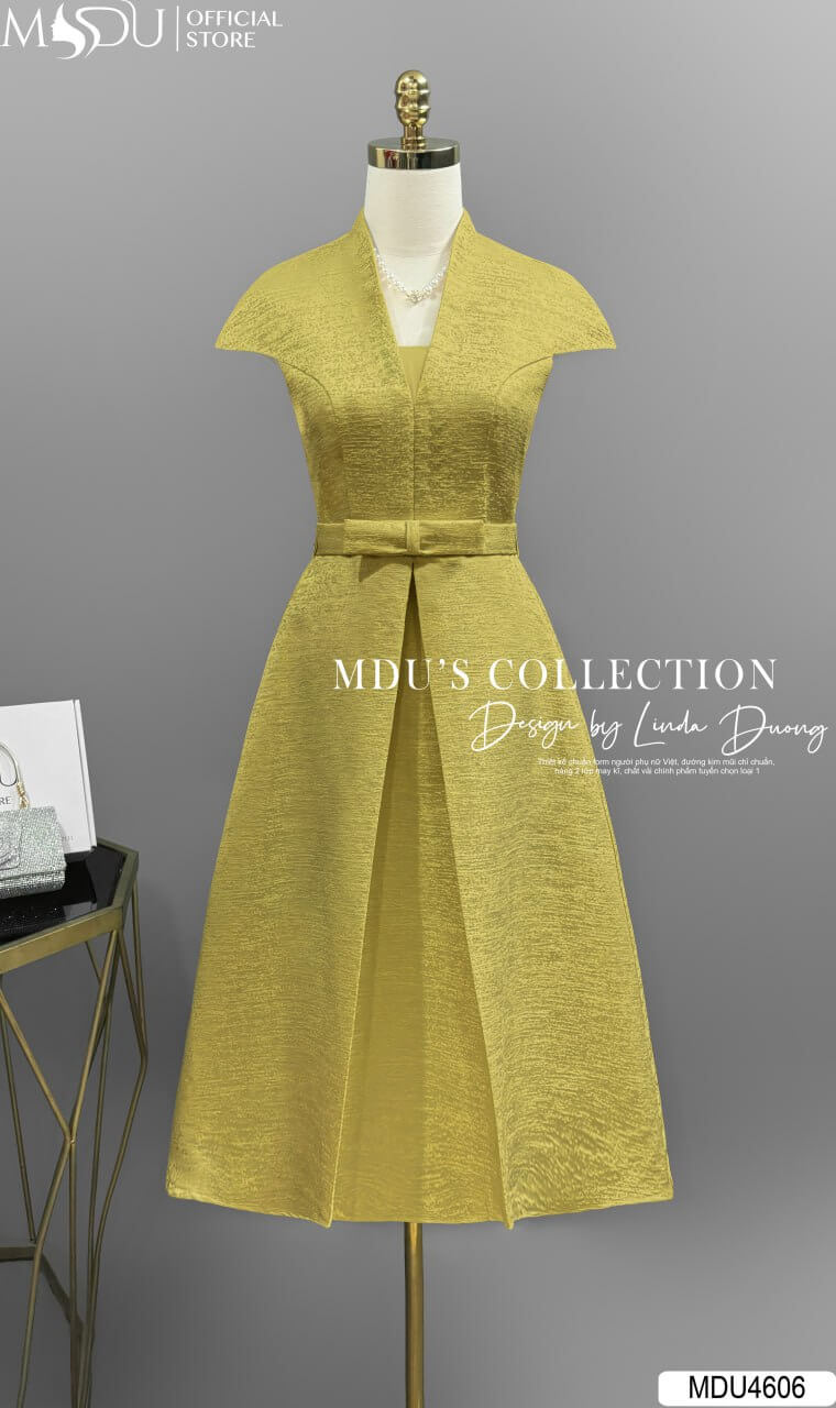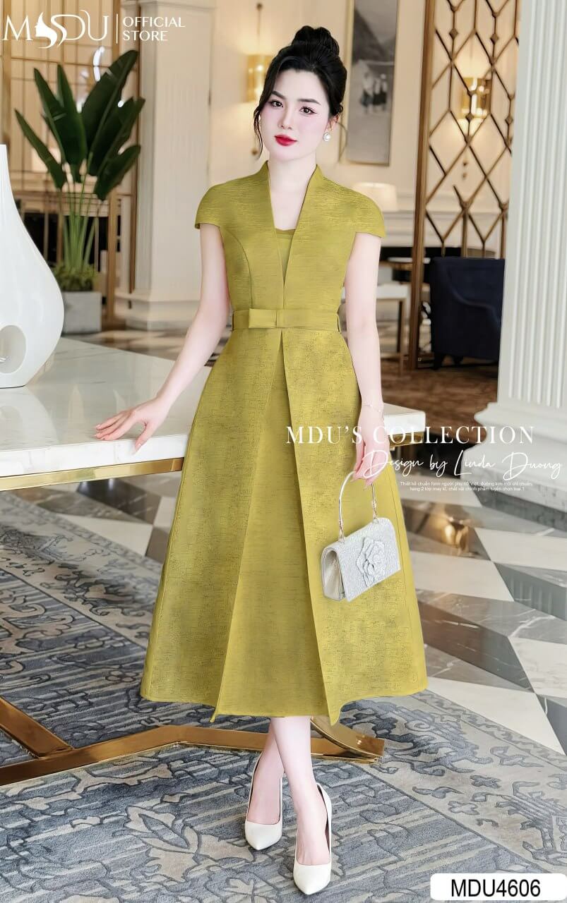 Với gam màu xanh olive ánh vàng đầy thanh lịch, MDU4606 toát lên vẻ đẹp nền nã, quý phái nhưng không kém phần hiện đại. Thiết kế cổ chữ V tinh tế và dáng váy xòe nhẹ giúp tôn dáng, khoe khéo vẻ đẹp tự nhiên của phái đẹp. Đây là lựa chọn hoàn hảo cho các buổi tiệc, sự kiện quan trọng hoặc các dịp đặc biệt.