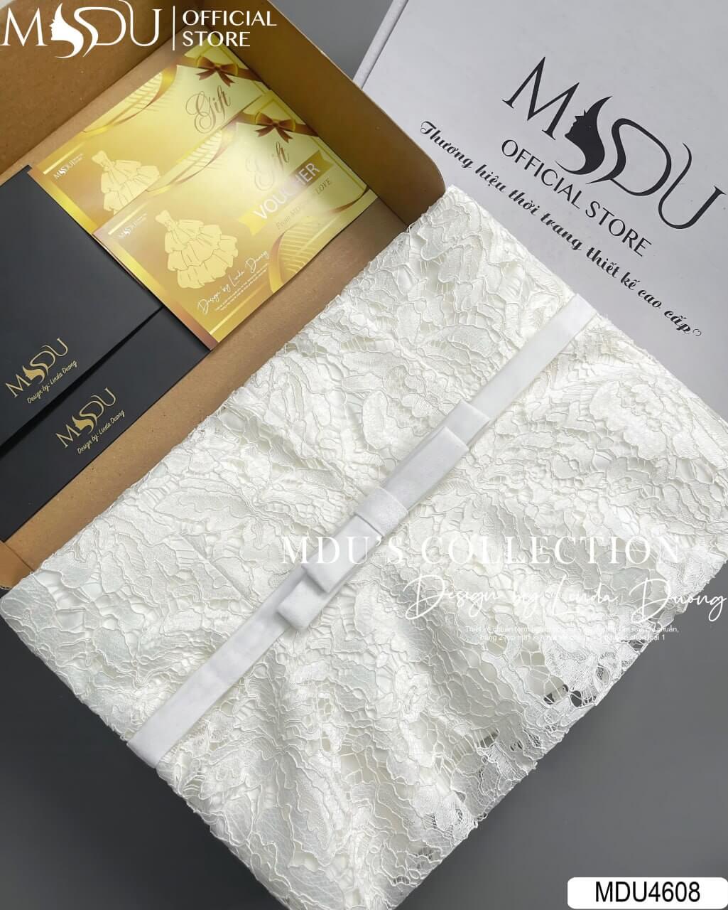 MDU4608 được chế tác từ chất ren dệt Hàn cao cấp, nổi bật với sự mềm mại, thoáng khí và độ bền vượt trội. Họa tiết hoa văn tinh xảo được thực hiện tỉ mỉ, tạo nên sự sang trọng và đẳng cấp. Sự tinh tế trong đường may và chất liệu cao cấp giúp mẫu váy này trở thành lựa chọn hoàn hảo cho phái đẹp yêu thích sự thanh lịch và khác biệt.