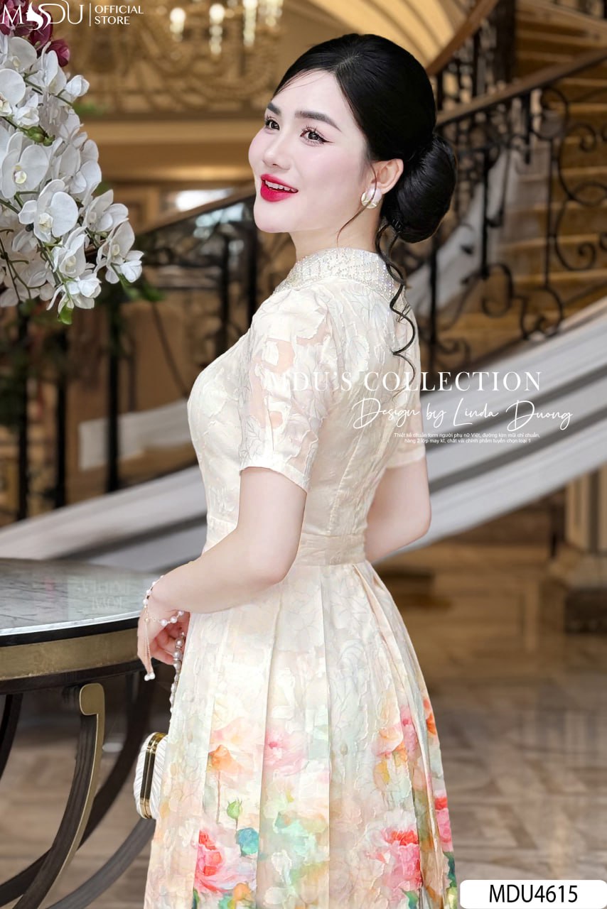 MDU Fashion tự hào giới thiệu thiết kế MDU4615 – một tuyệt phẩm dành cho những quý cô yêu thích vẻ đẹp thanh lịch, duyên dáng nhưng không kém phần nổi bật. Được chế tác từ chất liệu Tơ Ép cao cấp với hoa văn tinh xảo, kết hợp cùng gam màu cam đào phối họa tiết, mẫu váy mang đến diện mạo nhẹ nhàng, nữ tính nhưng vẫn thu hút ánh nhìn. Dáng váy xòe bay bổng giúp tôn lên nét yêu kiều, thanh thoát của phái đẹp, tạo nên sự cuốn hút đầy tinh tế.