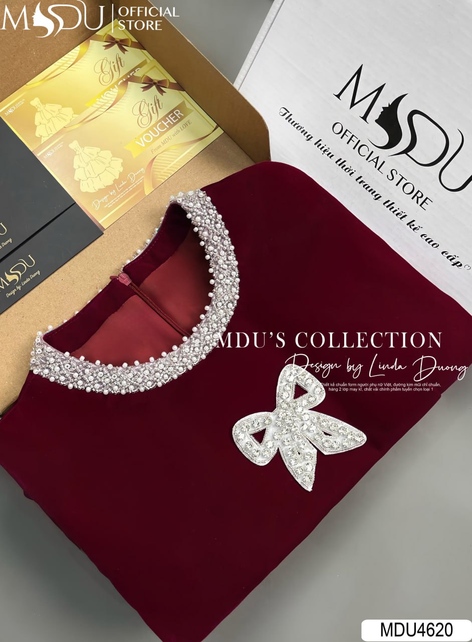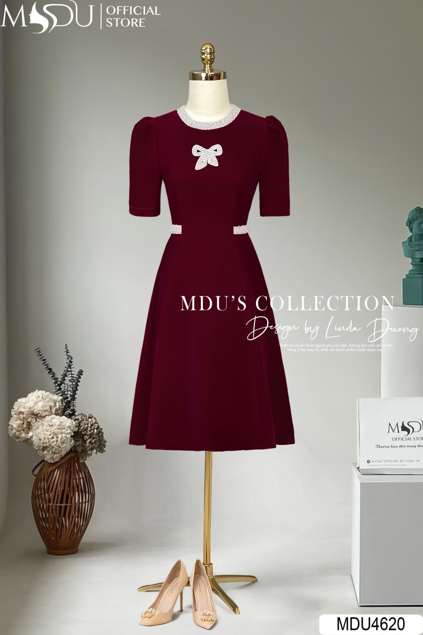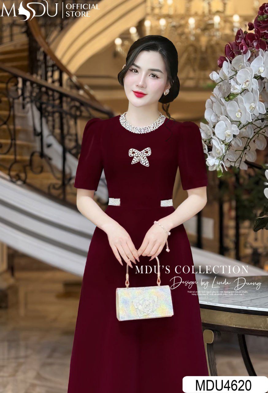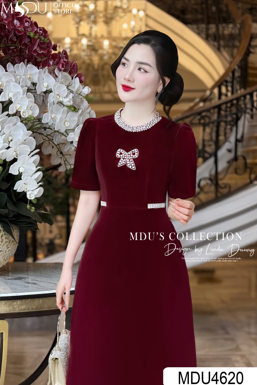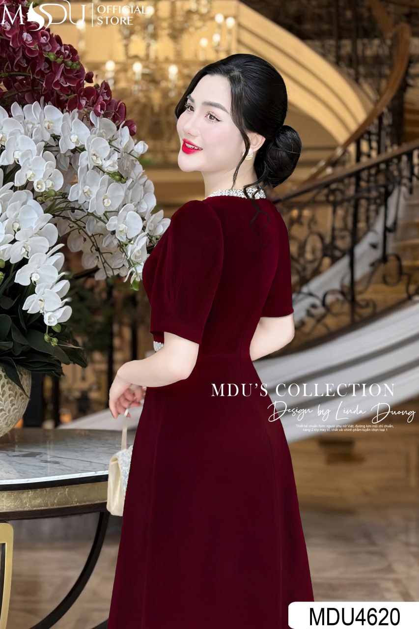 MDU Fashion, thương hiệu thời trang hàng đầu Việt Nam, hân hạnh giới thiệu mẫu váy thiết kế MDU4620 – biểu tượng của sự quý phái và đẳng cấp. Chiếc váy được chế tác từ chất liệu nhung tuyết cao cấp, mang đến vẻ đẹp mềm mại, sang trọng và đầy quyến rũ. Với gam màu đỏ đô nổi bật cùng thiết kế dáng xòe nhẹ nhàng, phần cổ áo đính ngọc trai tinh tế và tay dài hiện đại, MDU4620 là lựa chọn hoàn hảo để phái đẹp tỏa sáng trong các sự kiện đặc biệt.