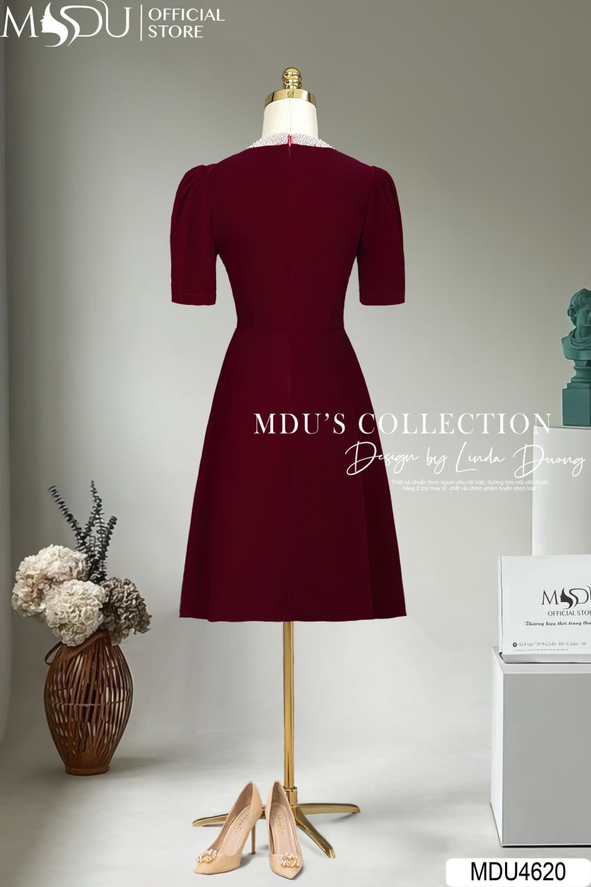 Sắc đỏ đô của MDU4620 mang đến cảm giác quyền lực, quyến rũ và đầy cuốn hút. Thiết kế dáng xòe nhẹ nhàng, kết hợp với phần cổ áo đính ngọc trai tinh tế và tay dài hiện đại, tạo nên sự duyên dáng và nổi bật cho người mặc.