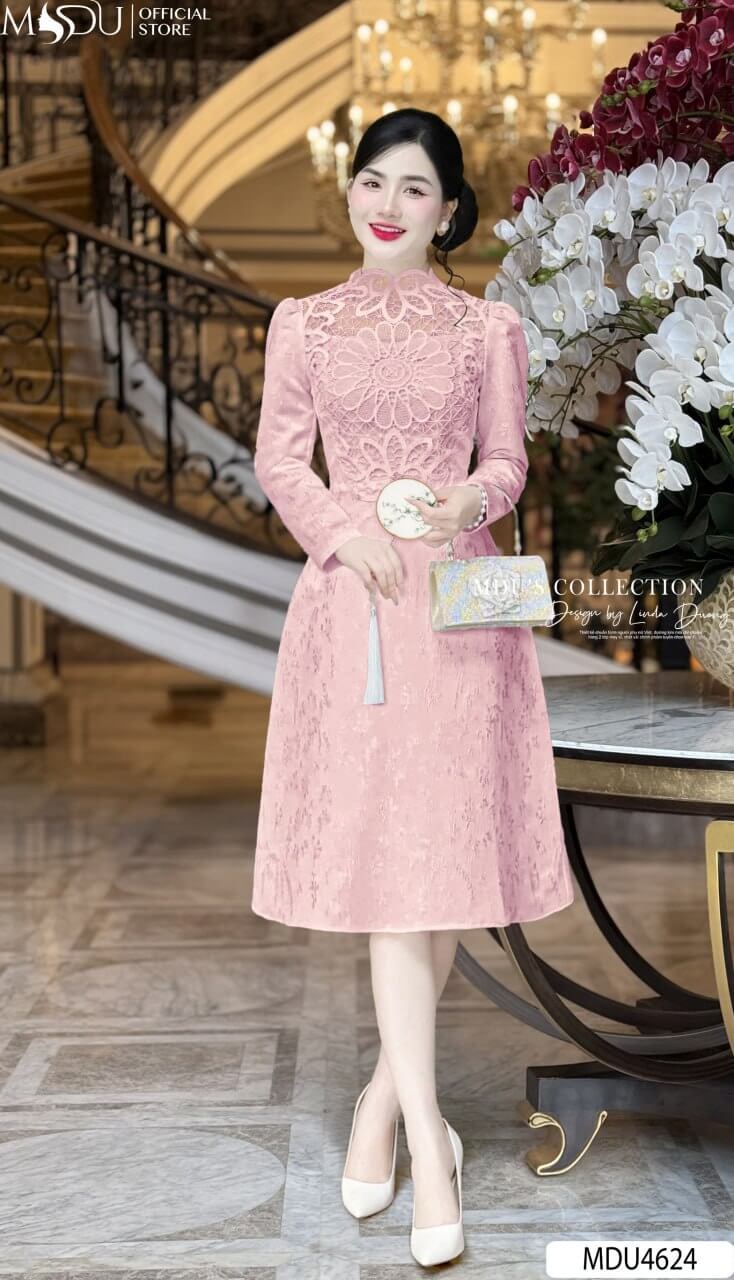 Sắc hồng của MDU4624 toát lên vẻ dịu dàng, ngọt ngào nhưng vẫn đầy cuốn hút. Thiết kế dáng xòe nhẹ, tay dài giúp tôn lên vóc dáng thanh thoát, tạo nên phong cách duyên dáng và quý phái.
