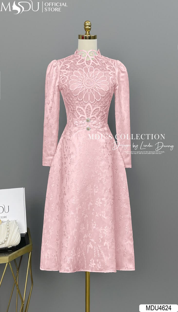 MDU Fashion, thương hiệu thời trang hàng đầu Việt Nam, hân hạnh giới thiệu mẫu váy thiết kế MDU4624 – hiện thân của sự sang trọng và quyến rũ. Chiếc váy được chế tác từ chất gấm Milan cao cấp phối ren, tạo nên vẻ đẹp tinh xảo, thanh lịch và đầy cuốn hút. Với họa tiết tinh xảo, đính ngọc ánh kim, thiết kế dáng xòe nhẹ cùng sắc hồng trang nhã, MDU4624 là lựa chọn hoàn hảo để phái đẹp tỏa sáng trong những dịp đặc biệt.