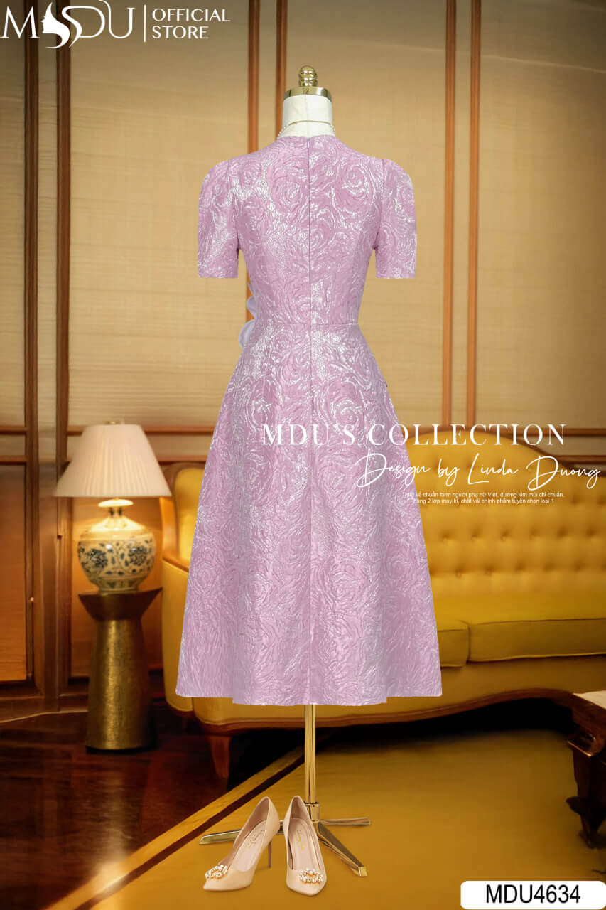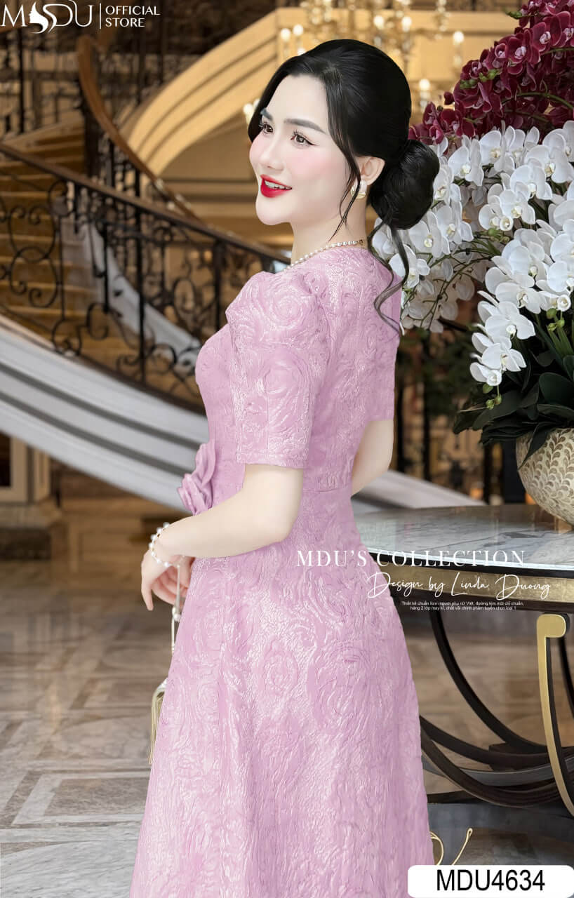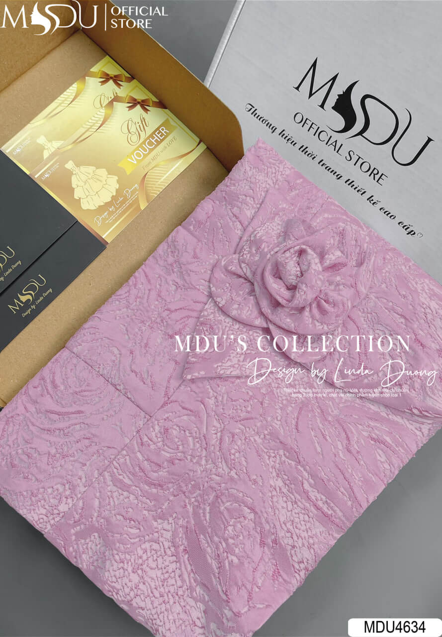 MDU Fashion mang đến thiết kế MDU4634 sự hòa quyện hoàn hảo giữa thanh lịch và nữ tính, MDU4634 được chế tác từ gấm dập vân nổi cao cấp, mang đến hiệu ứng sang trọng với gam hồng pastel ánh tím tinh tế. Chất vải đứng form nhưng vẫn mềm mại, giúp tôn lên vóc dáng mà vẫn đảm bảo sự thoải mái khi mặc.