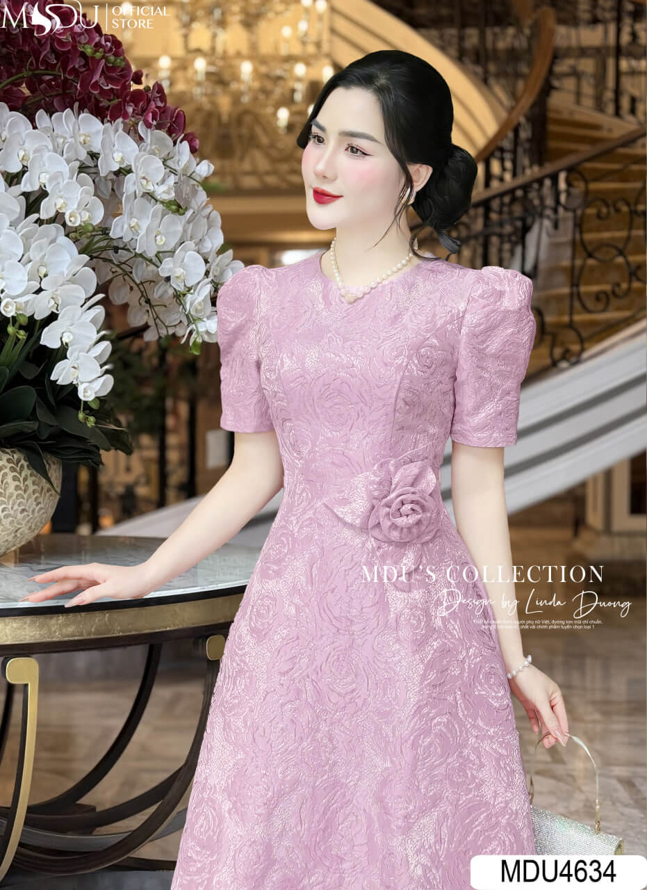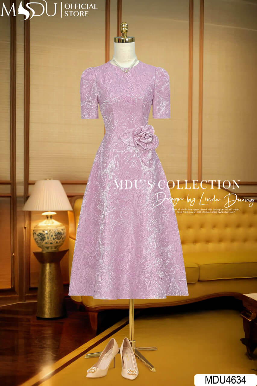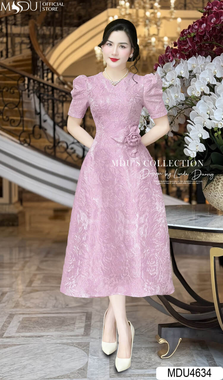 MDU Fashion mang đến thiết kế MDU4634 sự hòa quyện hoàn hảo giữa thanh lịch và nữ tính, MDU4634 được chế tác từ gấm dập vân nổi cao cấp, mang đến hiệu ứng sang trọng với gam hồng pastel ánh tím tinh tế. Chất vải đứng form nhưng vẫn mềm mại, giúp tôn lên vóc dáng mà vẫn đảm bảo sự thoải mái khi mặc.