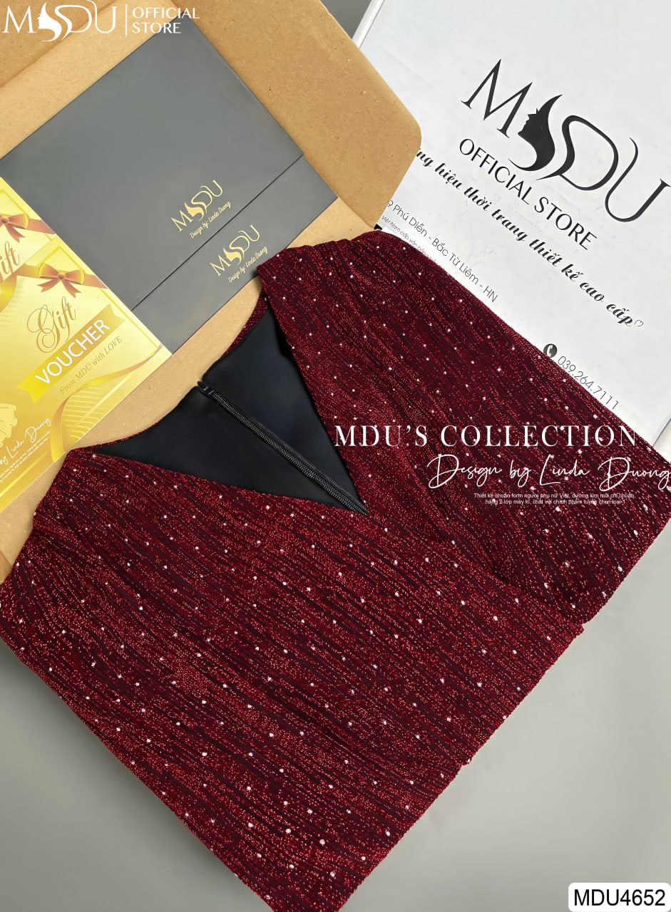 MDU Fashion, thương hiệu thời trang hàng đầu Việt Nam, hân hạnh giới thiệu mẫu váy thiết kế MDU4652 – biểu tượng của sự lấp lánh và quyến rũ. Chiếc váy được chế tác từ chất liệu nhũ dệt kim sa cao cấp, tạo hiệu ứng lấp lánh độc đáo, giúp phái đẹp nổi bật trong mọi khoảnh khắc. Với gam màu đỏ đô sang trọng, MDU4652 là sự lựa chọn hoàn hảo để bạn tỏa sáng trong các sự kiện đặc biệt.