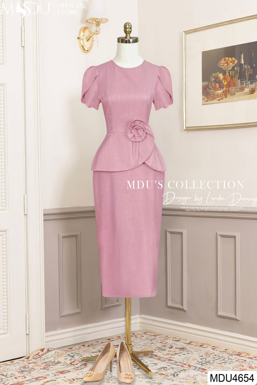 MDU4654 được thiết kế với dáng ôm body tinh tế, tôn lên đường cong quyến rũ của phái đẹp. Thiết kế vừa vặn giúp nàng khoe khéo vóc dáng thanh mảnh nhưng vẫn giữ được sự thanh lịch, nhã nhặn. Điểm nhấn hoa xoắn ở eo là chi tiết đắt giá, giúp tạo hiệu ứng thon gọn vòng hai, đồng thời làm tăng nét nữ tính, duyên dáng.