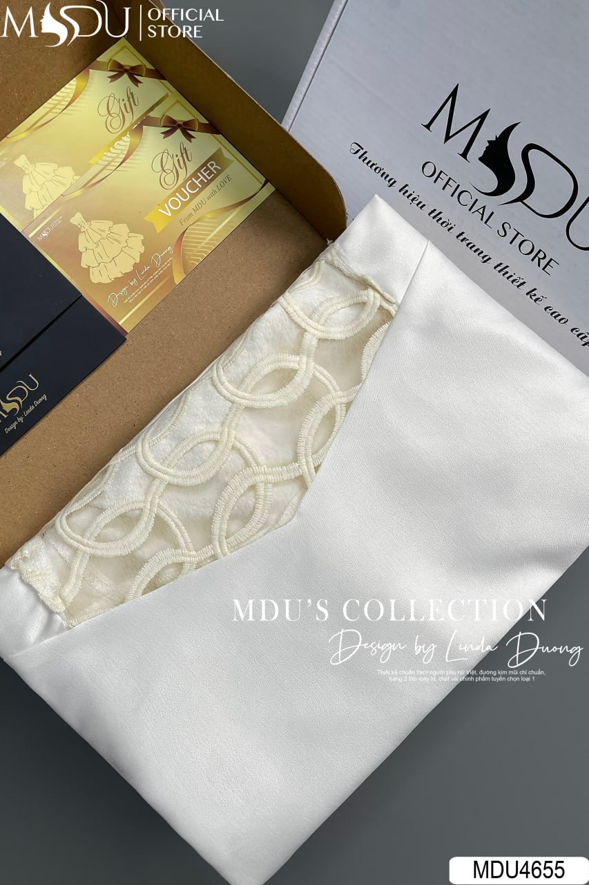 MDU Fashion giới thiệu mẫu váy thiết kế MDU4655, sự lựa chọn hoàn hảo cho những quý cô yêu thích vẻ đẹp sang trọng, tinh tế và đầy quyến rũ. Với kiểu tay hến điệu đà, kết hợp với chất liệu tafta phối ren thêu cao cấp, chiếc váy này không chỉ khoe được vẻ đẹp thanh thoát mà còn tạo nên một nét quyến rũ riêng biệt. Gam màu trắng ngọc trang nhã và thiết kế dáng váy dài xòe nhẹ giúp từng bước đi trở nên uyển chuyển, duyên dáng, mang đến một vẻ ngoài hoàn hảo.