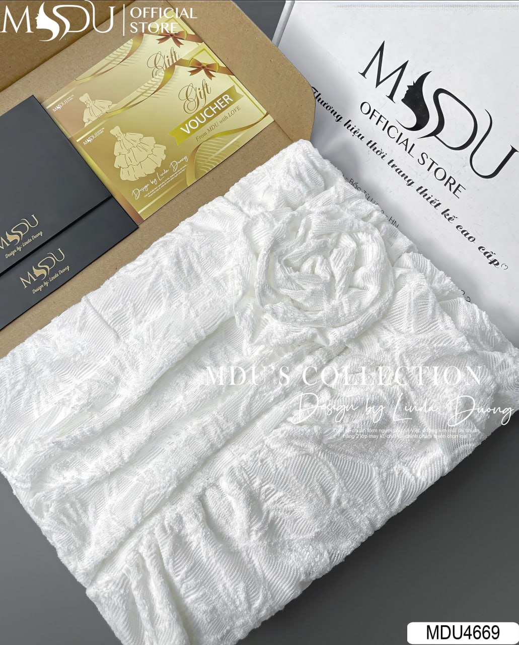 MDU4669 được làm từ chất liệu ren thêu cao cấp, nổi bật với họa tiết tinh xảo và độ mềm mại hoàn hảo. Chất vải có độ rũ nhẹ giúp chiếc váy giữ được phom dáng bay bổng, đồng thời vẫn đảm bảo sự thoải mái khi mặc. Sự kết hợp giữa ren thêu tỉ mỉ và đường nét thiết kế thanh thoát tạo nên vẻ ngoài sang trọng, giúp nàng nổi bật trong mọi sự kiện.