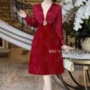 Mẫu váy nổi bật với thiết kế cổ vuông cách điệu, tôn lên vẻ đẹp thanh lịch và tinh tế. Gam màu đỏ đô quyền lực càng làm tăng thêm sự quyến rũ, giúp bạn thu hút mọi ánh nhìn và khẳng định phong cách thời trang riêng biệt của mình.