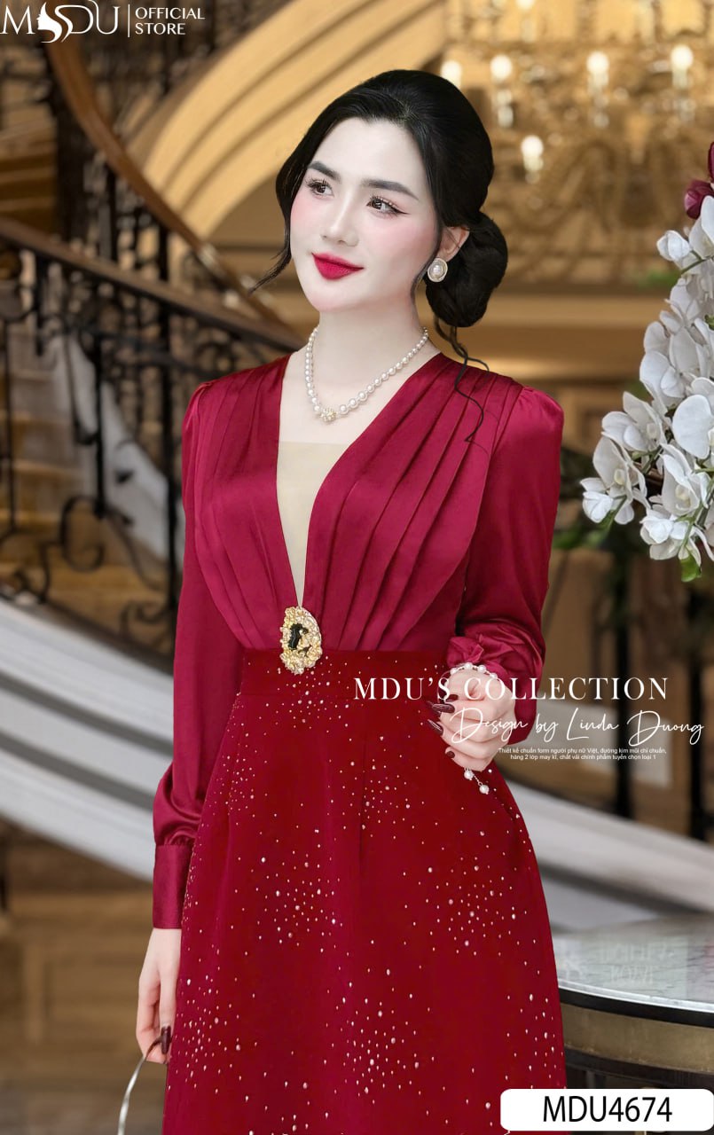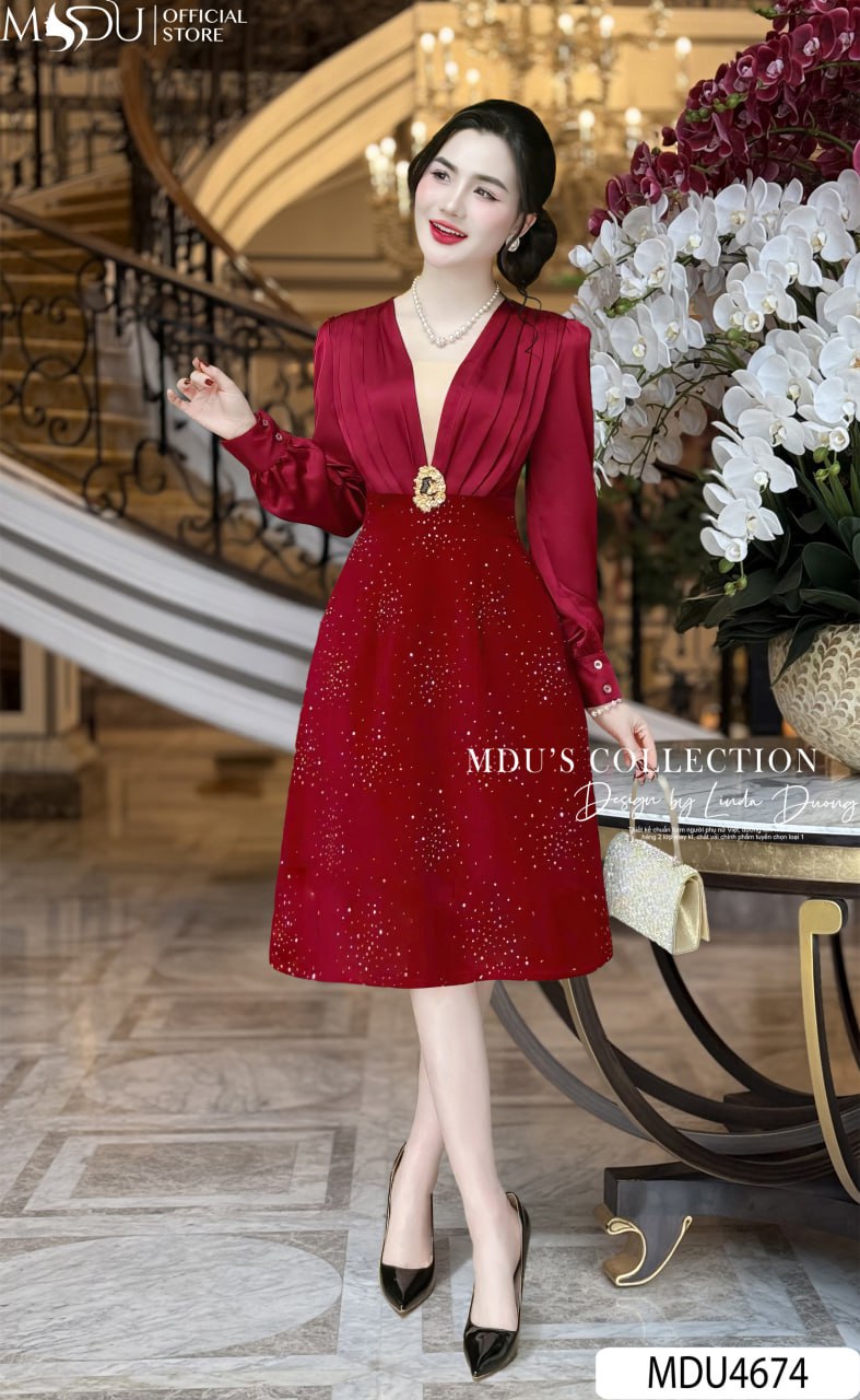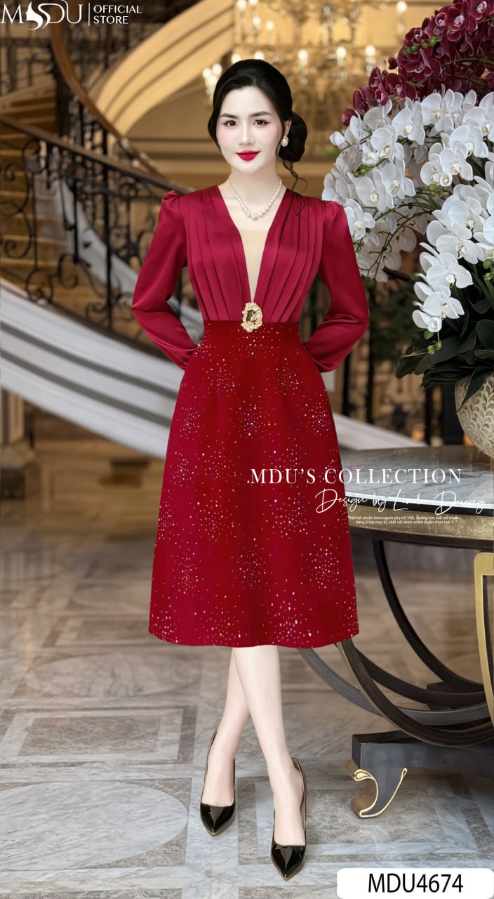 MDU Fashion, thương hiệu thời trang hàng đầu Việt Nam, hân hạnh giới thiệu mẫu váy thiết kế MDU4674 – biểu tượng của sự thanh lịch và quyến rũ. Chiếc váy được chế tác từ chất liệu lụa vân phối Nhung Tuyết cao cấp, mang lại cảm giác mềm mại, thoải mái nhưng vẫn tôn lên nét sang trọng và đẳng cấp. Với dáng váy xòe bồng bềnh, cổ vuông cách điệu và màu đỏ đô quyền lực, MDU4674 là sự lựa chọn hoàn hảo để phái đẹp tự tin tỏa sáng trong những buổi tiệc hay sự kiện đặc biệt.