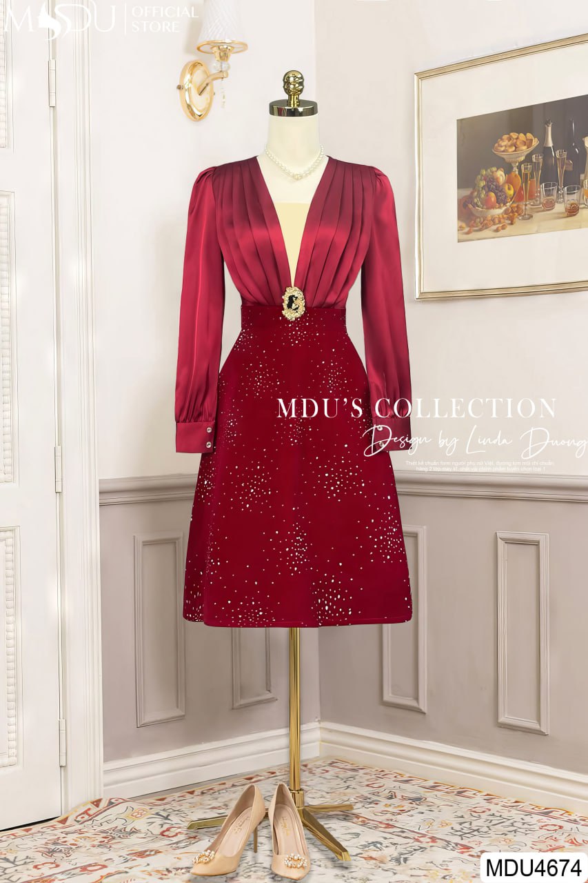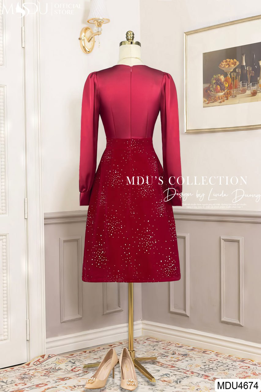MDU4674 sử dụng chất liệu lụa vân mềm mại, kết hợp với Nhung Tuyết cao cấp giúp chiếc váy giữ dáng hoàn hảo mà vẫn mang đến cảm giác dễ chịu khi mặc. Đây chính là sự kết hợp lý tưởng cho phái đẹp yêu thích sự nhẹ nhàng nhưng không kém phần nổi bật.