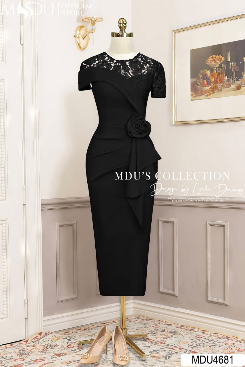 MDU Fashion tiếp tục mang đến thiết kế MDU4681 – một tuyệt tác dành cho nàng yêu thích sự sang trọng, tinh tế và đầy cuốn hút. Được chế tác từ chất liệu Mango Ý cao cấp phối ren mềm mịn, mẫu váy mang đến cảm giác nhẹ nhàng, thoải mái mà vẫn tôn lên đường cong quyến rũ. Thiết kế ôm body giúp tôn dáng tối đa, kết hợp với chi tiết xếp ly ép khéo léo cùng điểm nhấn hoa đính tinh xảo, tạo nên tổng thể hài hòa giữa nét mềm mại và vẻ đẹp đầy quyền lực.