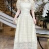 Thiết kế cổ cao viền ren tạo vẻ đẹp sang trọng, quý phái, trong khi phần tay bồng khéo léo giúp che khuyết điểm vai, mang đến sự tự tin cho nàng.