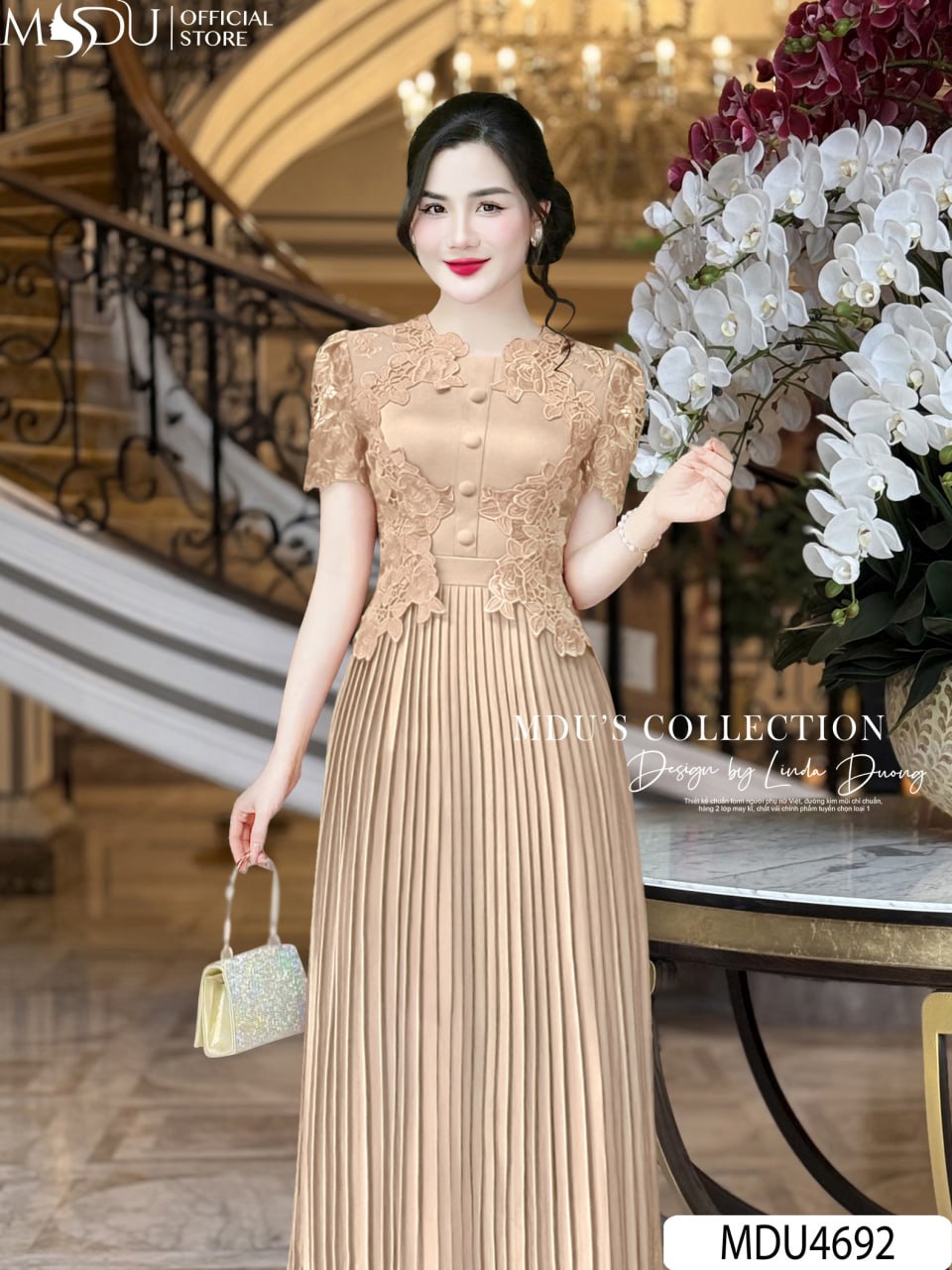 Thiết kế dáng xòe nhẹ kết hợp tay bồng duyên dáng tạo cảm giác mềm mại, uyển chuyển. Điểm nhấn đặc biệt nằm ở phần ren hoa hồng đan xen tinh xảo, khéo léo tôn lên nét nữ tính và thanh thoát. MDU4692 là lựa chọn lý tưởng cho nàng diện đi làm, dạo phố hay những dịp đặc biệt, với tính ứng dụng cao, không lỗi mốt.