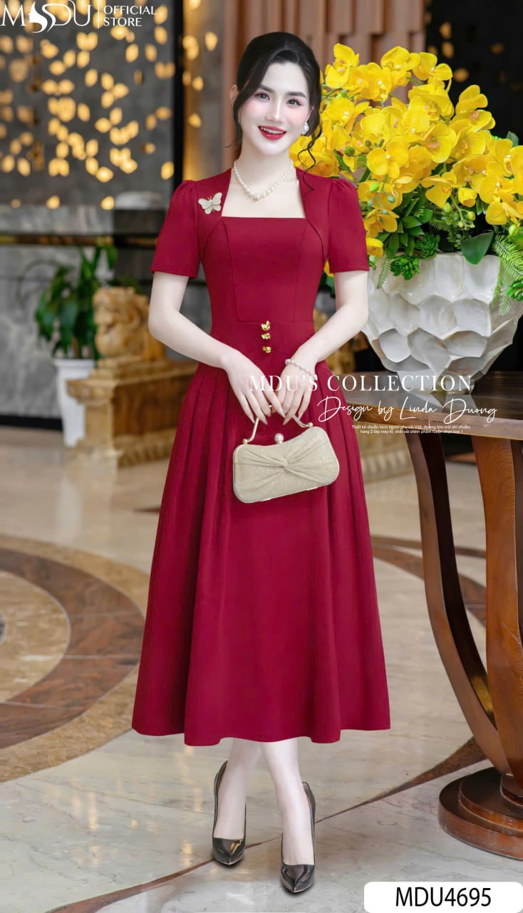 MDU Fashion mang đến thiết kế MDU4695 với chất liệu Mango Ý cao cấp, mềm mại và sang trọng, giúp giữ phom dáng chuẩn mực nhưng vẫn mang lại cảm giác thoải mái khi mặc. Gam đỏ quyến rũ không chỉ tôn lên sắc vóc mà còn khéo léo làm nổi bật nét đẹp cuốn hút, đầy sức sống của phái đẹp.