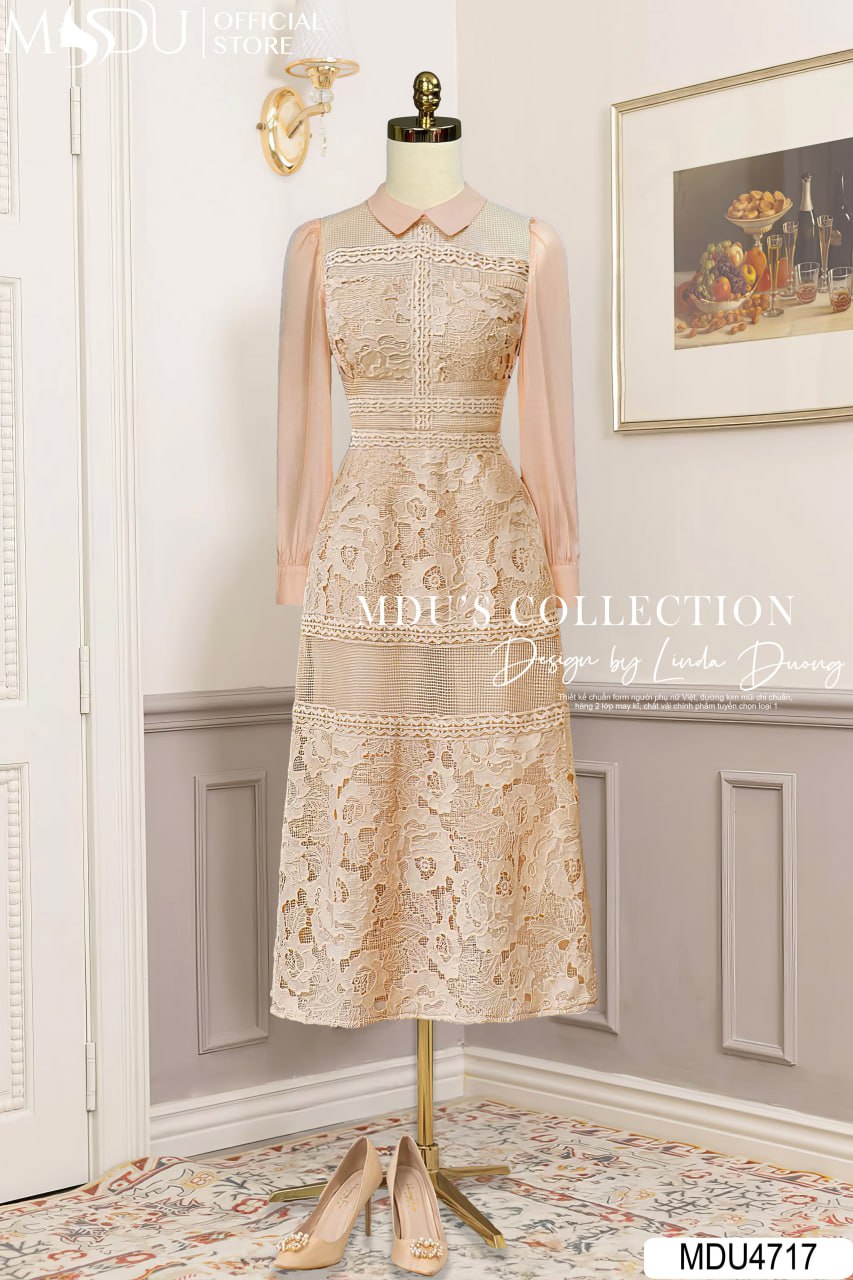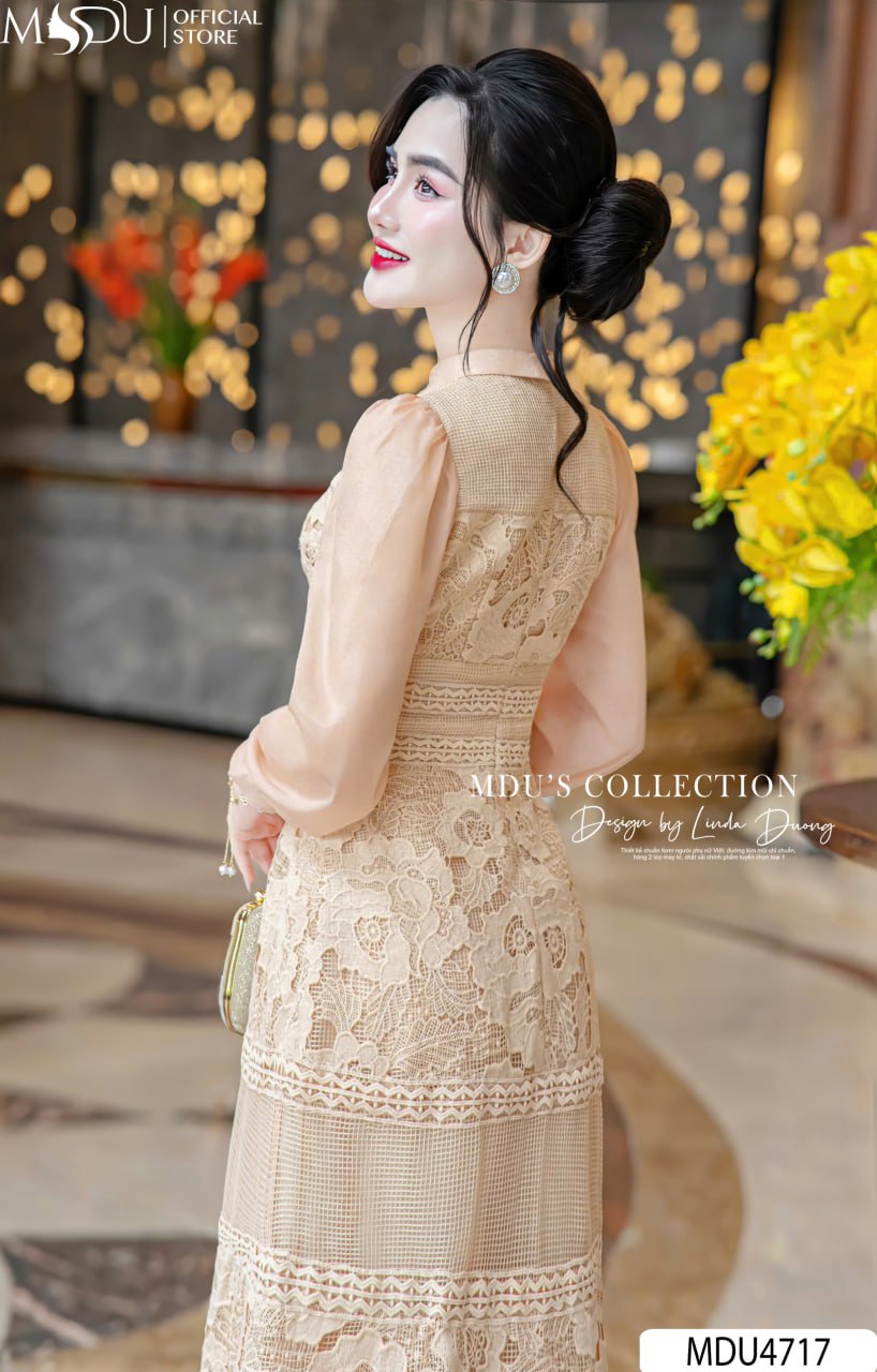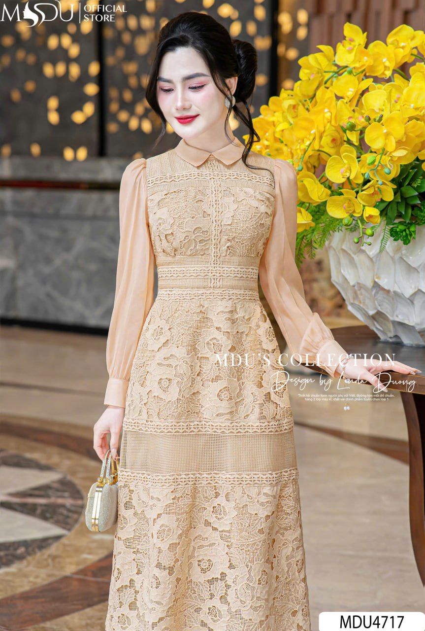 MDU Fashion giới thiệu mẫu thiết kế MDU4717 được làm từ ren điêu khắc phối tơ Hàn cao cấp, mang lại sự mềm mại, thoáng mát và giúp nàng tỏa sáng với vẻ ngoài thanh lịch. Gam màu nâu nude trang nhã giúp tôn da, thể hiện nét dịu dàng nhưng không kém phần quý phái.