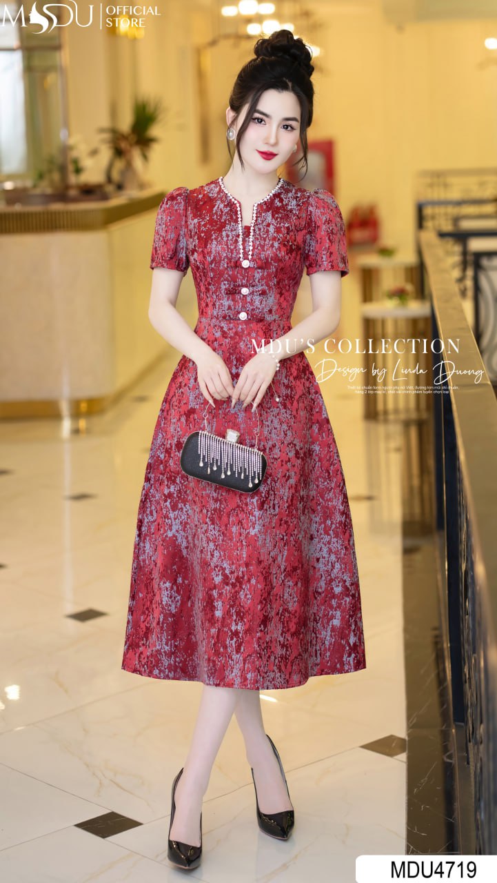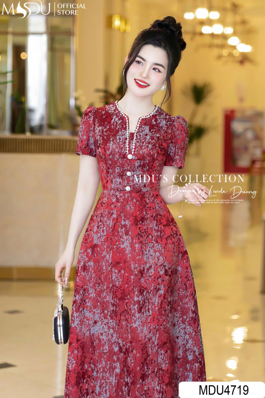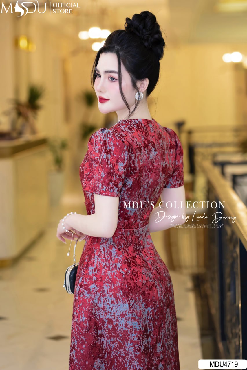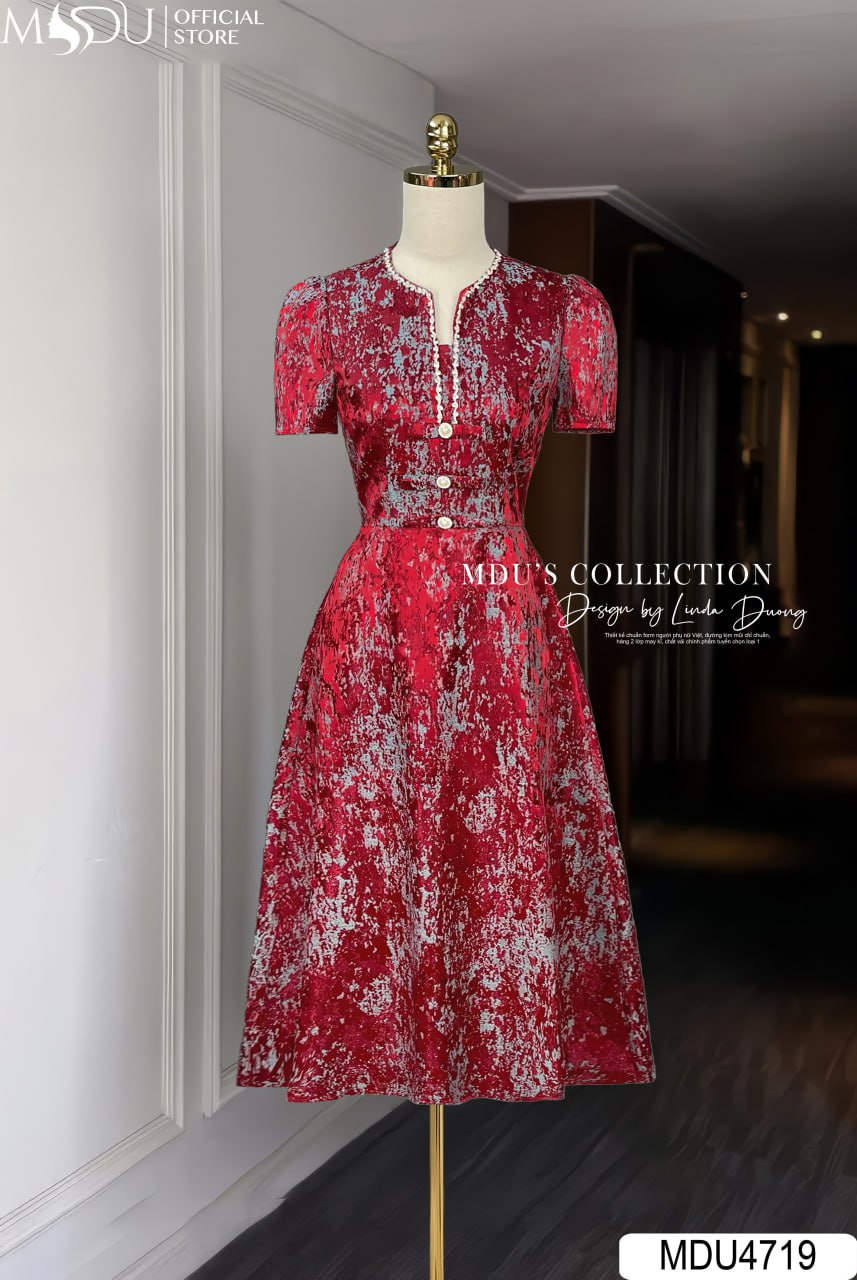 Váy Thiết Kế MDU4719 – Gấm Lụa Cao Cấp, Tỏa Sáng Vẻ Đẹp Quý Phái