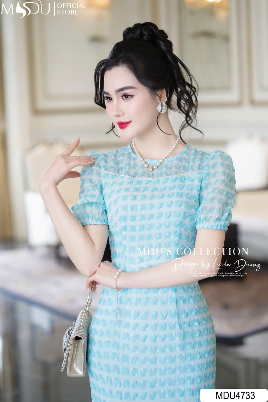 MDU4733 sở hữu điểm nhấn đặc biệt với bề mặt dệt nổi tinh tế, mang lại chiều sâu và sự sang trọng cho thiết kế. Phần tay bồng nhẹ nhàng tôn lên vẻ nữ tính, thanh thoát ở mọi góc nhìn, tạo nên sự hài hòa giữa nét dịu dàng và phong cách hiện đại. Chiếc váy không chỉ thoải mái mà còn khéo léo tôn dáng, giúp nàng tự tin tỏa sáng.