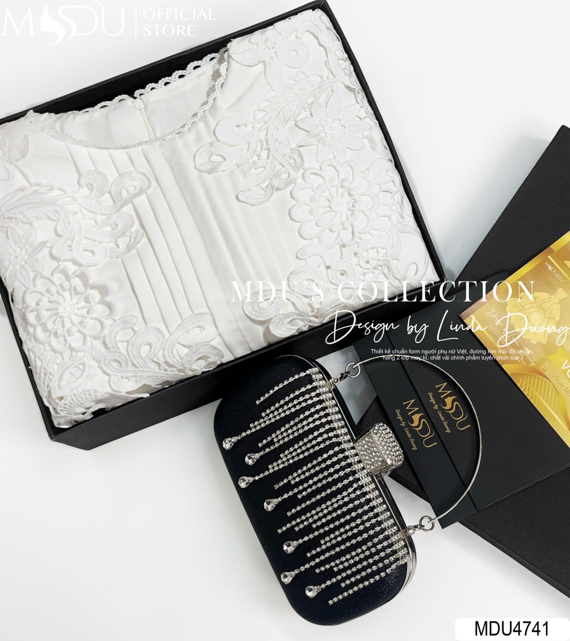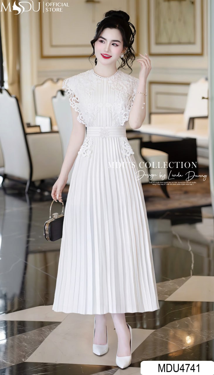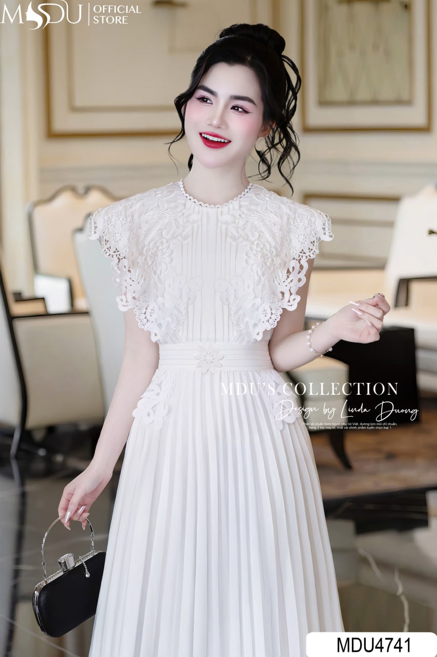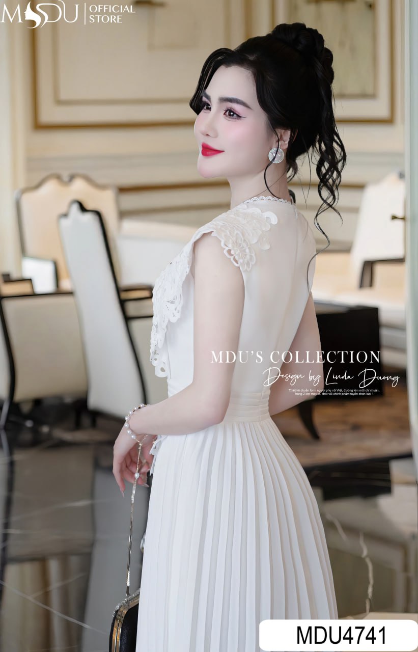 Gam màu trắng tinh khôi của MDU4741 mang đến sự tươi mới, hiện đại, là biểu tượng của vẻ đẹp trẻ trung và kiêu kỳ. Màu sắc này không chỉ làm sáng làn da mà còn giúp nàng nổi bật một cách nhẹ nhàng, phù hợp với những dịp gặp gỡ thân mật hay các sự kiện trang nhã. Kết hợp cùng dáng váy xòe, thiết kế này tạo nên một tổng thể hài hòa, đầy cuốn hút.