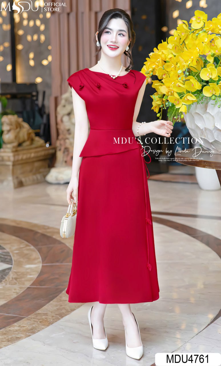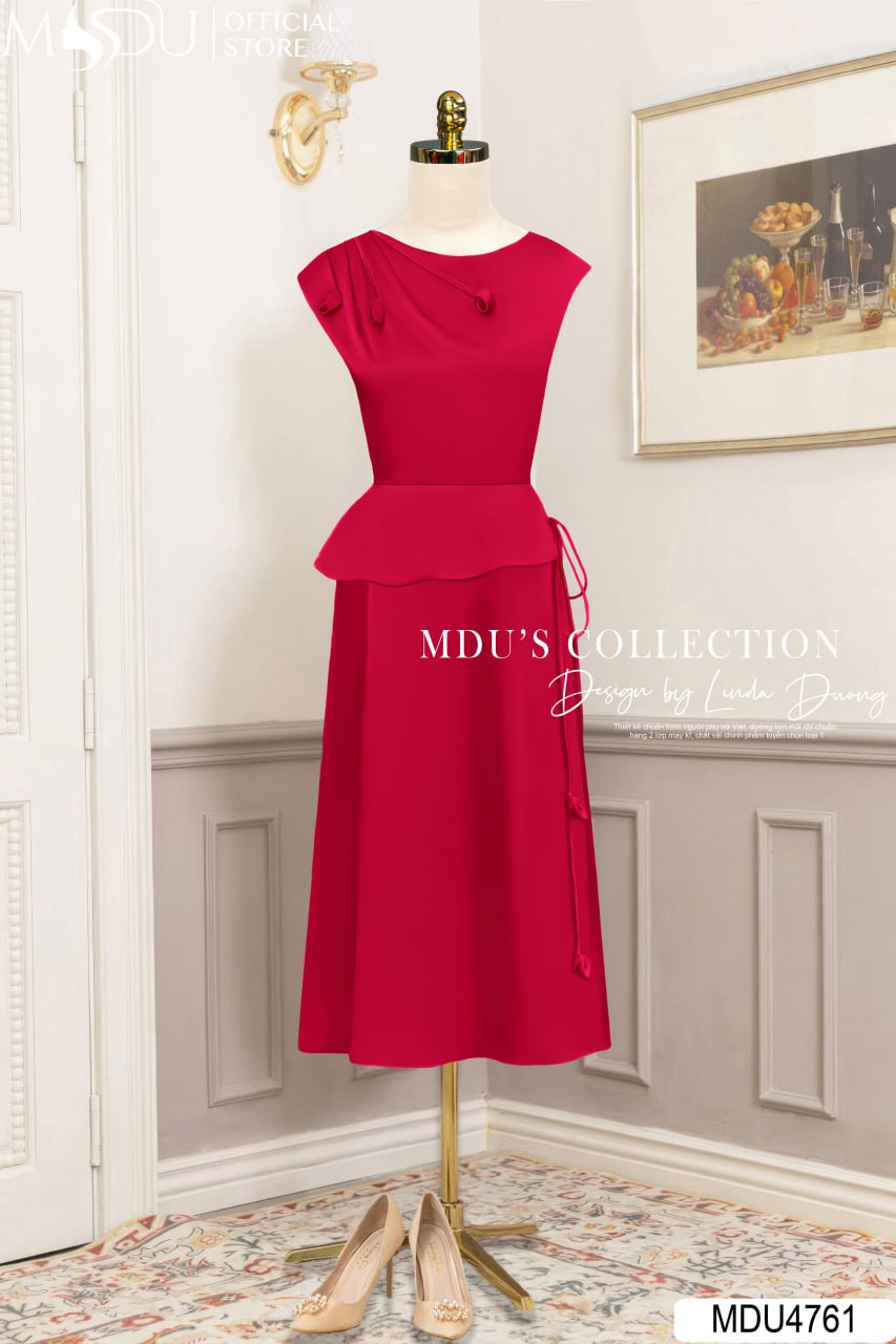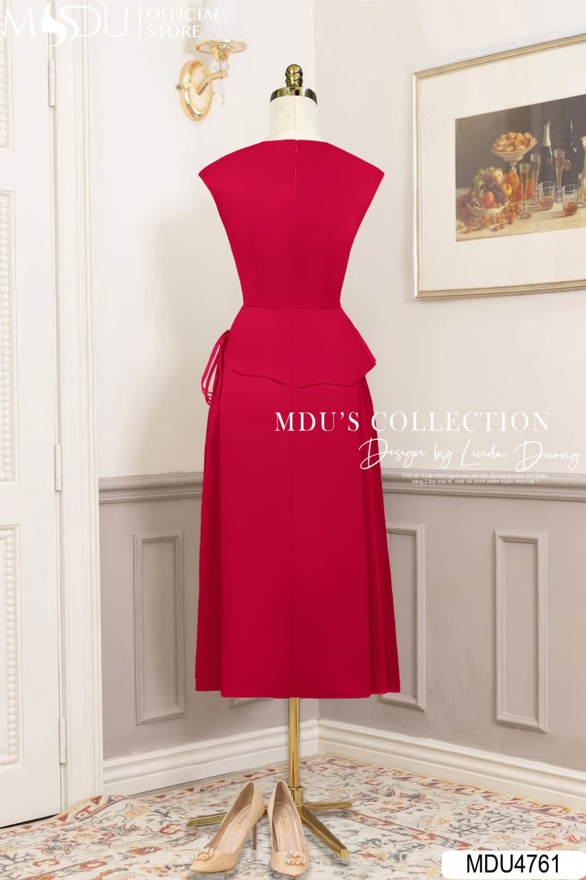Thiết kế peplum tôn dáng là điểm nhấn giúp định hình vòng eo thon gọn, tạo hiệu ứng cân đối và duyên dáng. Phần chân váy xòe nhẹ nhàng mang lại vẻ đẹp thanh lịch, nữ tính mà không kém phần quyến rũ. Sự kết hợp giữa dáng váy hiện đại và chi tiết tinh tế khiến MDU4761 trở thành lựa chọn lý tưởng cho những ai yêu thích phong cách thanh thoát nhưng vẫn nổi bật.