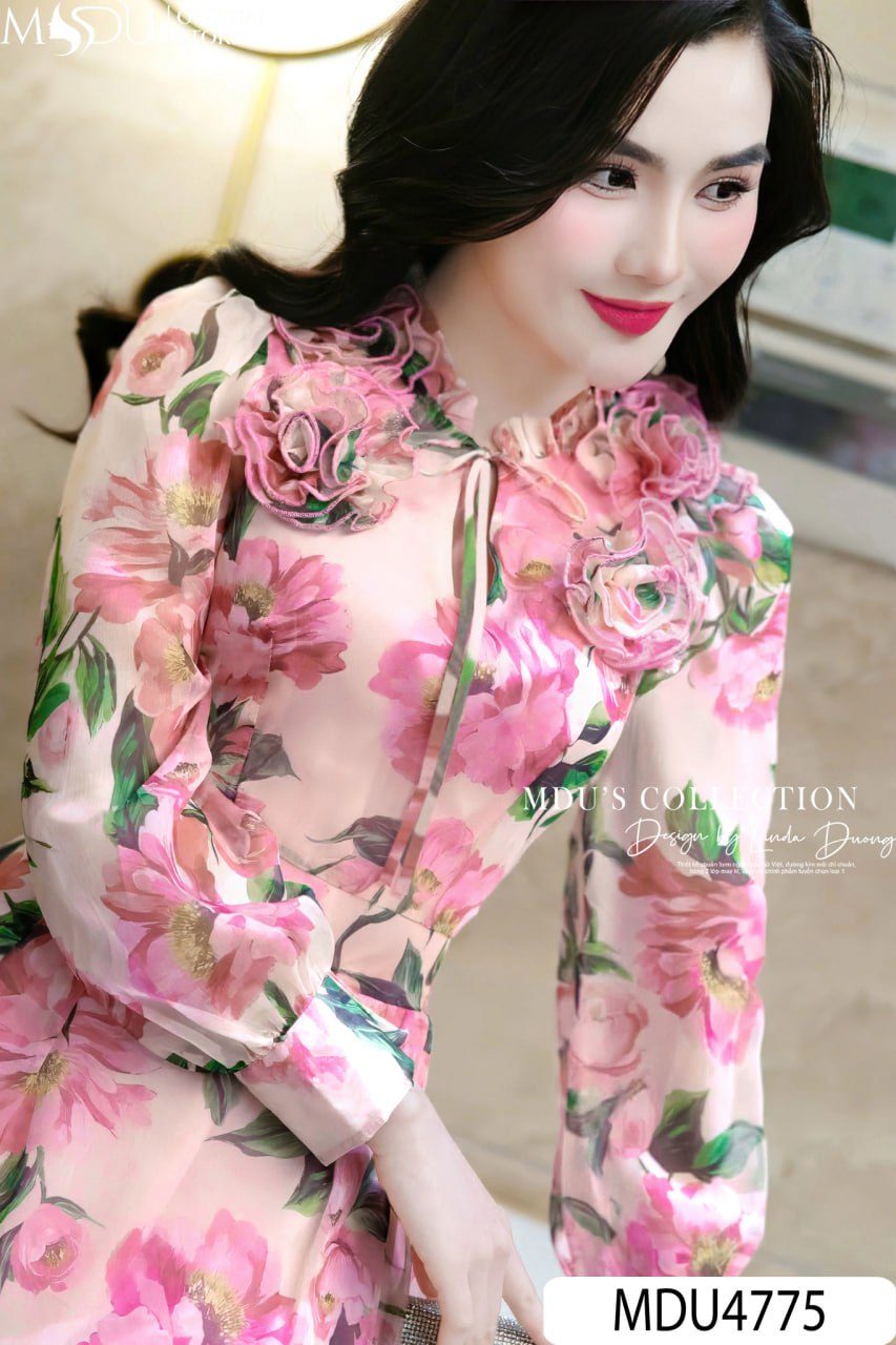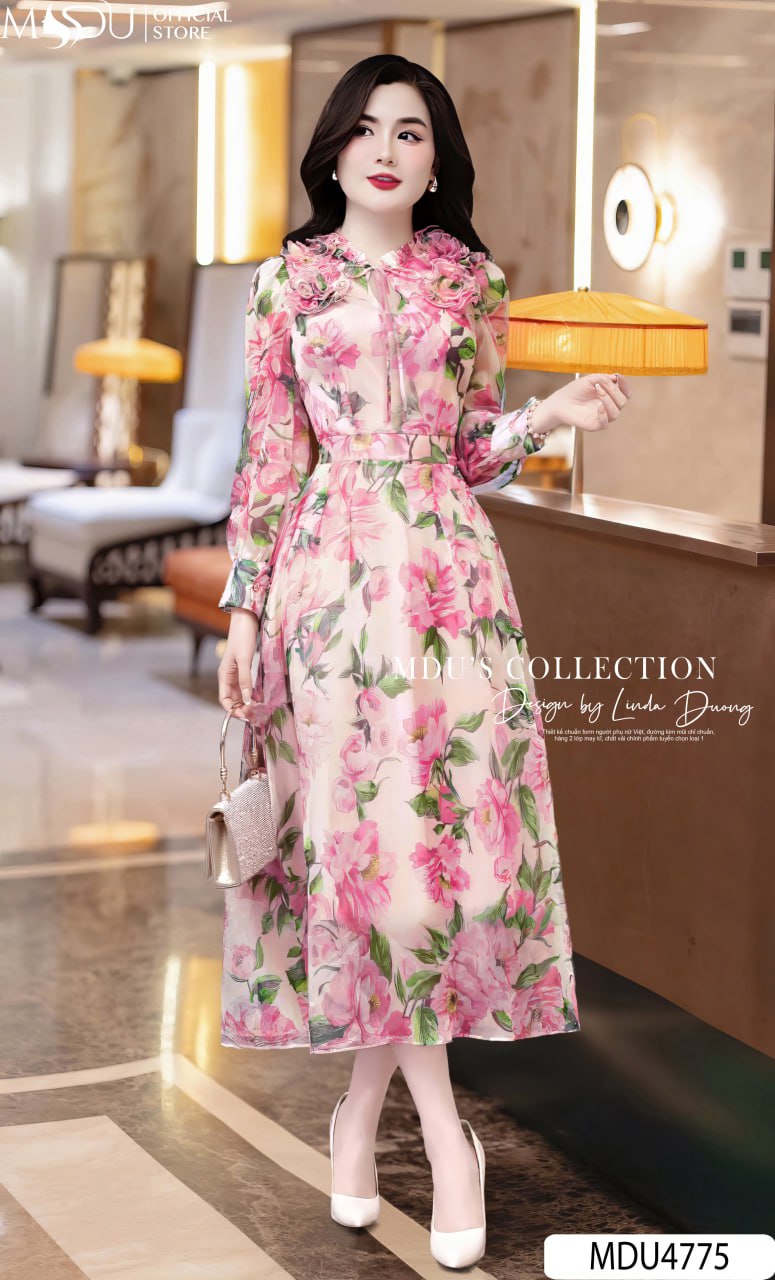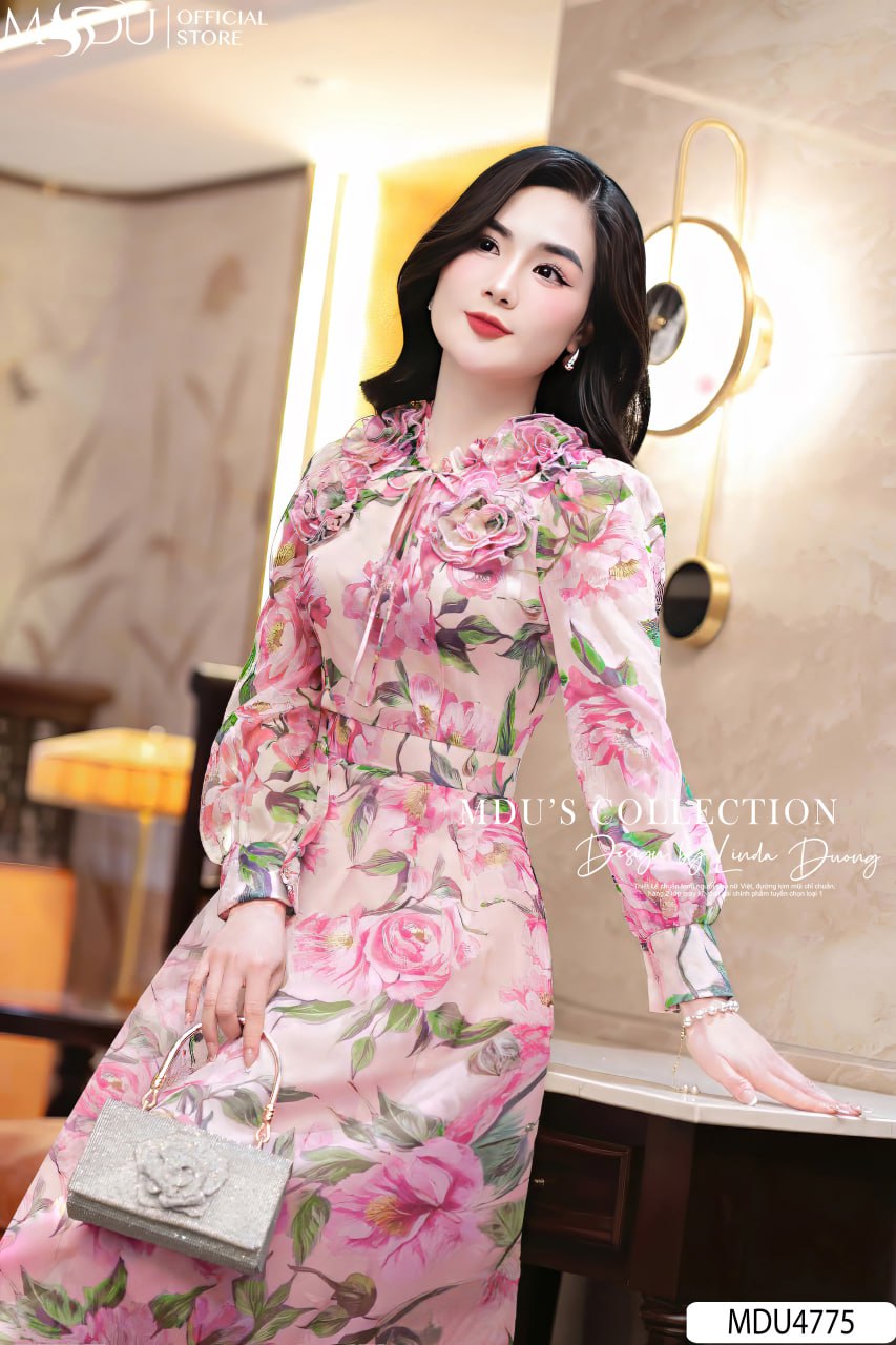 MDU Fashion trân trọng giới thiệu mẫu váy thiết kế MDU4775, được chế tác từ chất liệu tơ óng Hàn cao cấp, mang đến hiệu ứng ánh nhẹ mượt mà, tôn vinh vẻ đẹp thanh khiết và đầy nữ tính. Họa tiết hoa hồng rực rỡ được in nổi bật trên nền vải trong veo, kết hợp cùng cổ áo hoa 3D thủ công tinh xảo, tạo nên điểm nhấn nghệ thuật và duyên dáng. Dáng váy xòe nhẹ bay bổng, tay phồng thanh lịch cùng đai eo ôm khéo léo, định hình phom dáng hoàn hảo, giúp nàng toát lên nét ngọt ngào pha lẫn sang trọng.