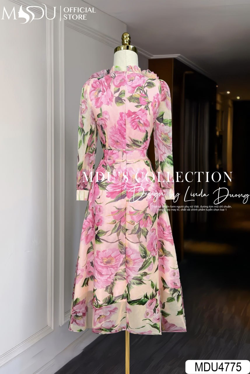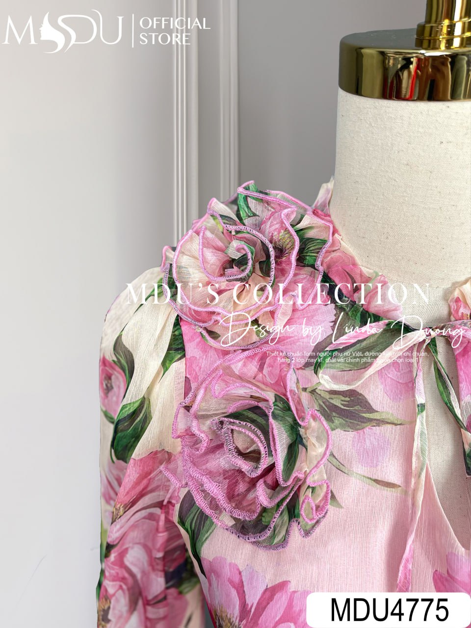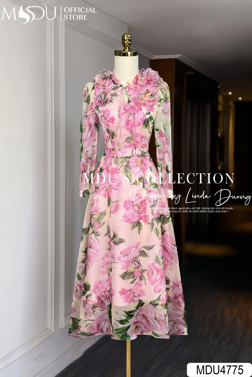 MDU Fashion trân trọng giới thiệu mẫu váy thiết kế MDU4775, được chế tác từ chất liệu tơ óng Hàn cao cấp, mang đến hiệu ứng ánh nhẹ mượt mà, tôn vinh vẻ đẹp thanh khiết và đầy nữ tính. Họa tiết hoa hồng rực rỡ được in nổi bật trên nền vải trong veo, kết hợp cùng cổ áo hoa 3D thủ công tinh xảo, tạo nên điểm nhấn nghệ thuật và duyên dáng. Dáng váy xòe nhẹ bay bổng, tay phồng thanh lịch cùng đai eo ôm khéo léo, định hình phom dáng hoàn hảo, giúp nàng toát lên nét ngọt ngào pha lẫn sang trọng.
