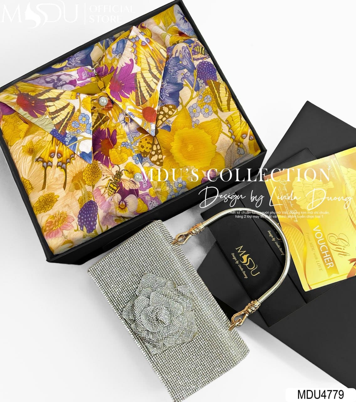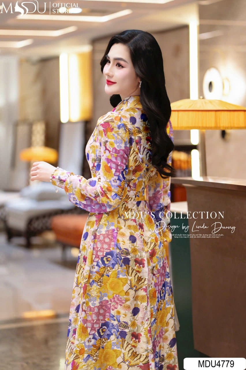 Váy MDU4779 được làm từ tơ xước cao cấp, mỏng nhẹ, bề mặt sần nhẹ, tạo vẻ tự nhiên và sang trọng. Họa tiết hoa lá rực rỡ trên nền vải mang đến nét nghệ thuật cuốn hút. Váy không co giãn, thiết kế 2 lớp với lớp lót lụa Habutai mềm mại, khóa giấu tinh tế và đường may tỉ mỉ, đảm bảo phom dáng hoàn hảo.