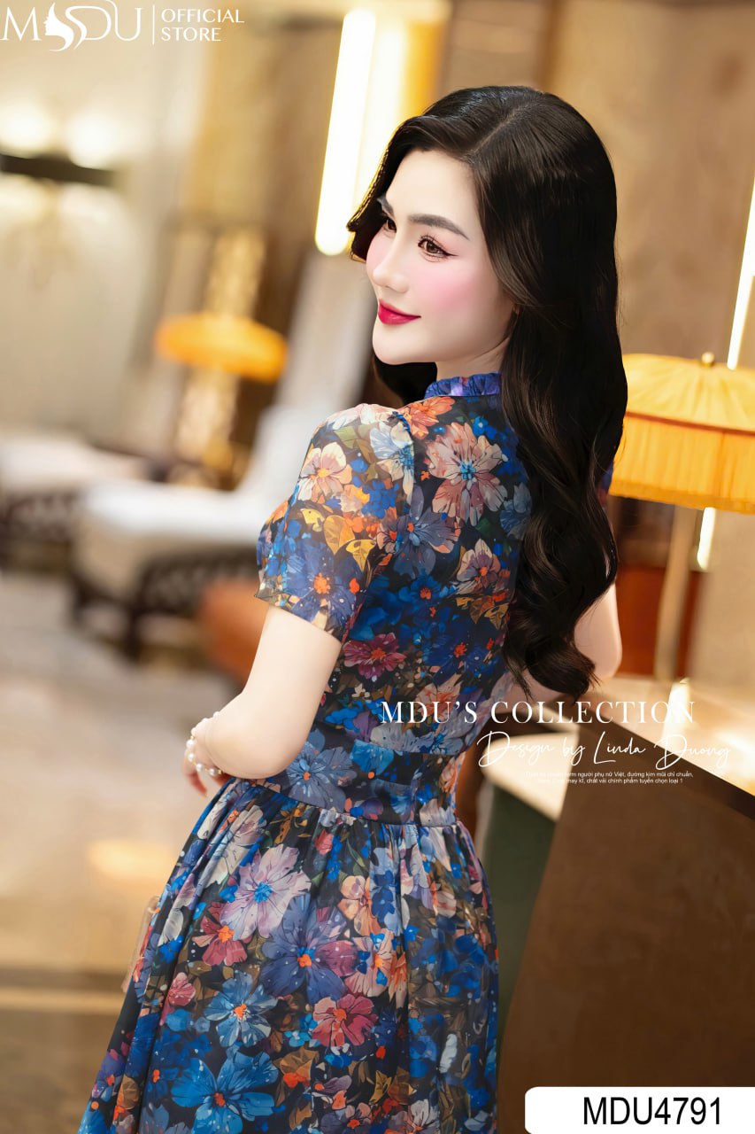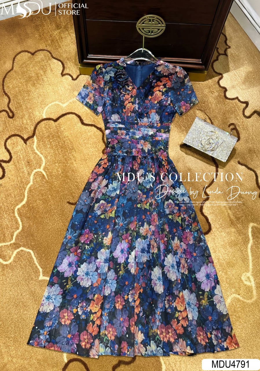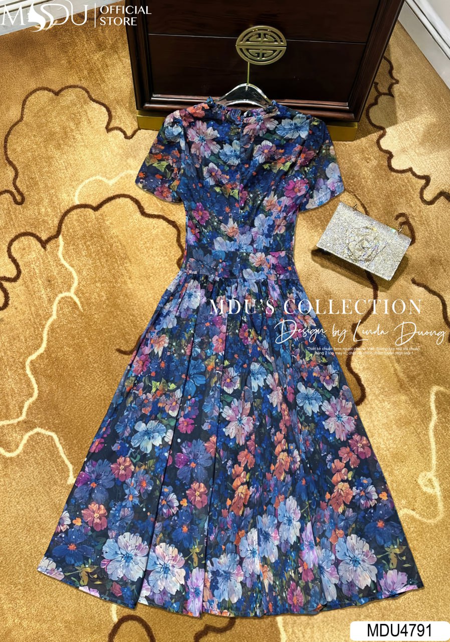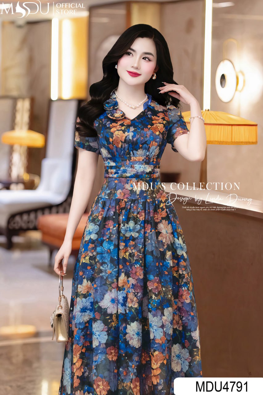 Váy Thiết Kế MDU4791 – Tơ Óng Cao Cấp, Sắc Hoa Văn Tinh Tế