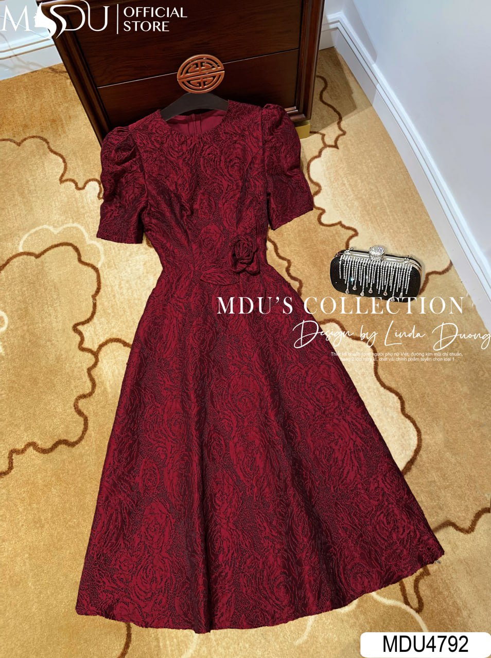 Váy Thiết Kế MDU4792– Chất Gấm Dập Vân Hoa Nổi Cao Cấp